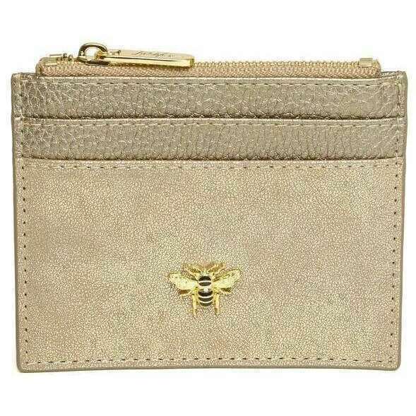 • 4枚のカードスロット、ジッパークロージャーキャッシュコンパートメント、フロントのハニービーロゴ、ゴールドメタルハードウェア