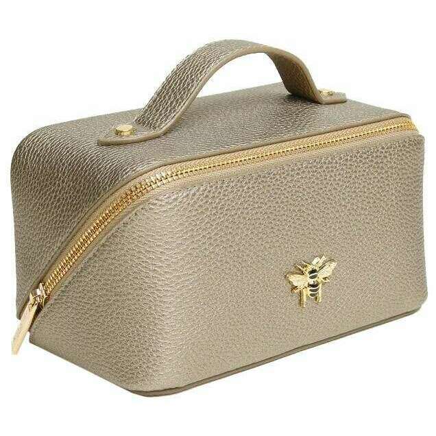 デザイナーのアリスウィーラーロンドンは、ブロンズトーンを使用してこの女性の100%ビーガンフェイクレザーバッグをお届けします。 9.5cm(高さ)x 18cm(幅)x 9.5cm(深さ)を測定します。すべてのバッグは、アリスウィーラーロンドンのパッケージで完成します。アリスウィーラーロンドンミニラグジュアリートレインケース - ブロンズは人気のある列車ケースのミニバージョンであり、必須のトイレタリー、メイクアップ、またはその他の旅行の必需品を運ぶスタイリッシュでかわいい方法です。内部は完全に裏打ちされており、小さなビット用の内部ポケットに加えてデュアルメインセクションとして含まれているため、簡単に整理できます。すべてが、そのジップクロージャーとともに安全にシールされており、象徴的に美しいミツバチの装飾で仕上げられています。