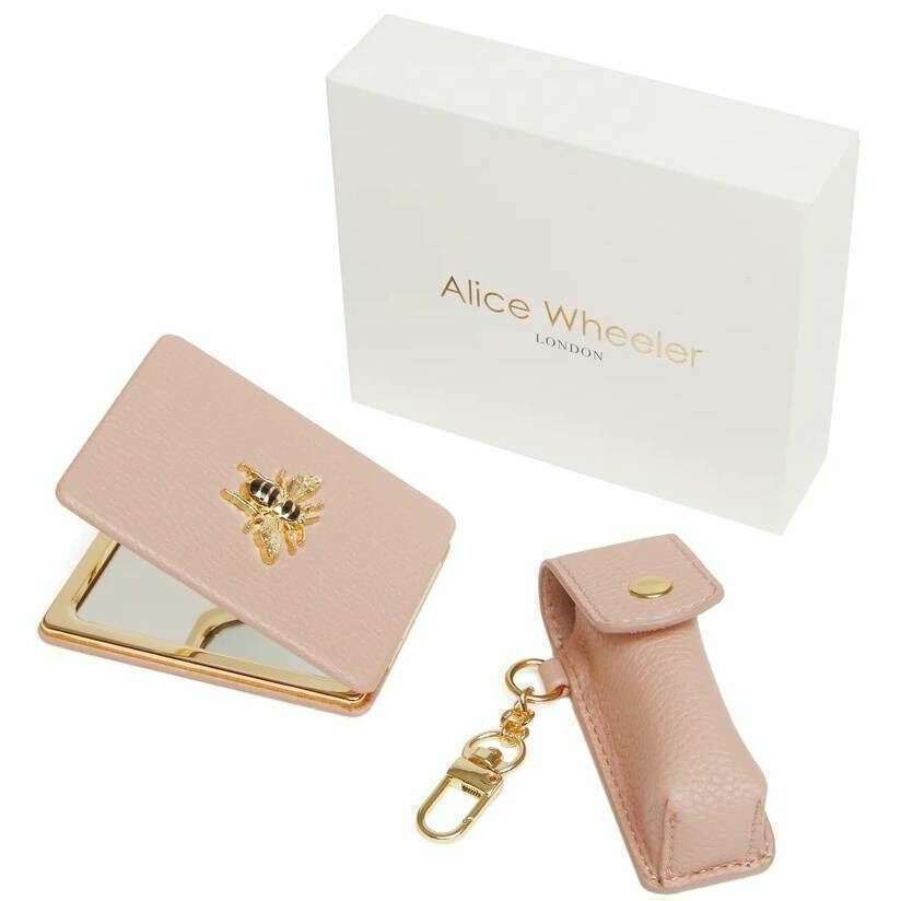 アリスウィーラーロンドンオーダーロングコンパクトミラーと口紅ホルダーギフトセット - ピンク