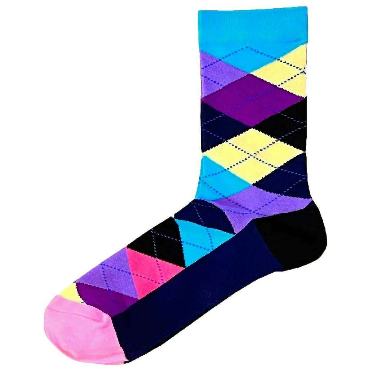 Bassin and Brown アーガイル ソックス - ターコイズ/イエロー/パープル