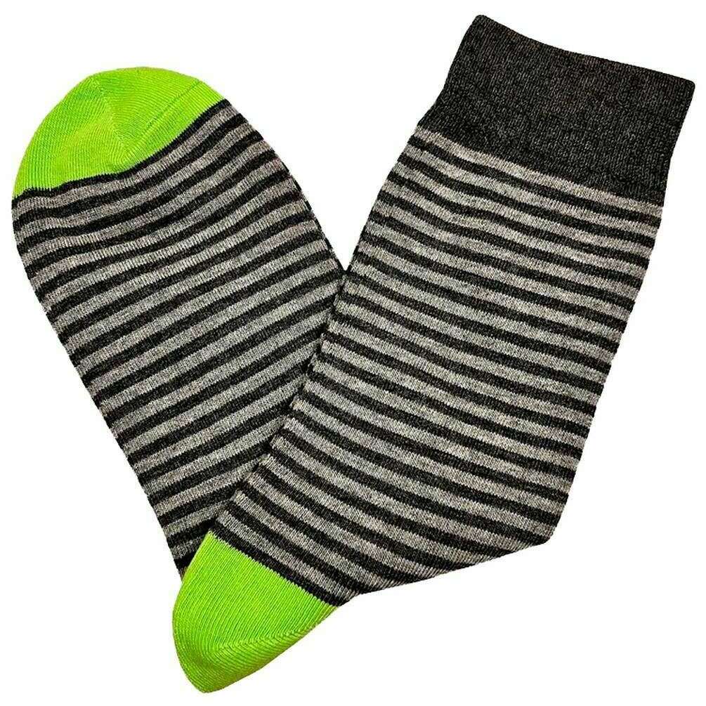 Bassin and Brown Huxley 薄型マルチストライプ ソックス - チャコール/グレー/ライムグリーン