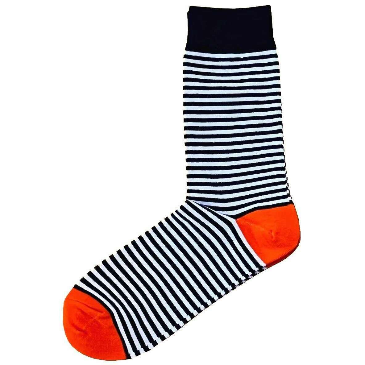 Bassin and Brown ハクスリー シン マルチ ストライプ ソックス - ネイビー/ホワイト/オレンジ