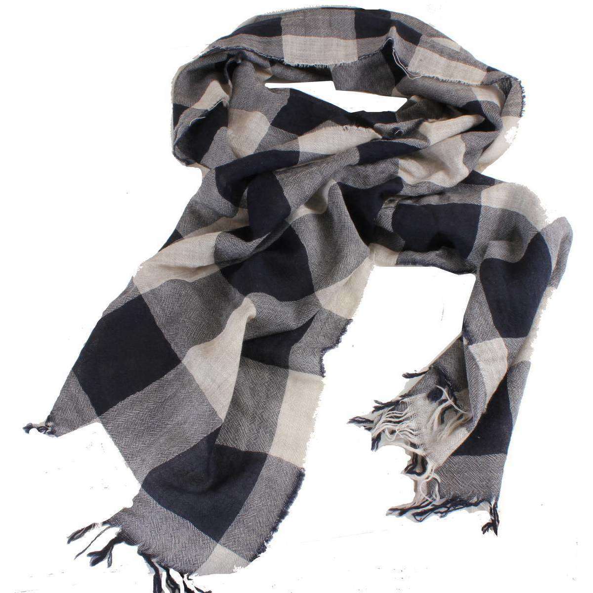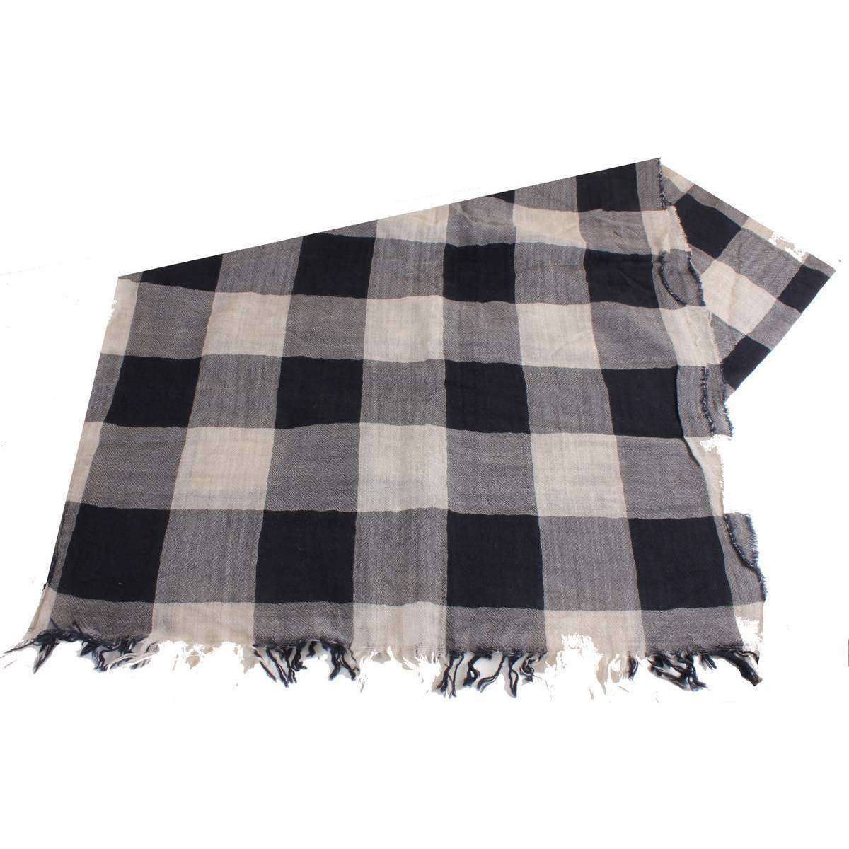 バシンとブラウンミーガンチェックウールスカーフ - ベージュ/ブラック/グレー