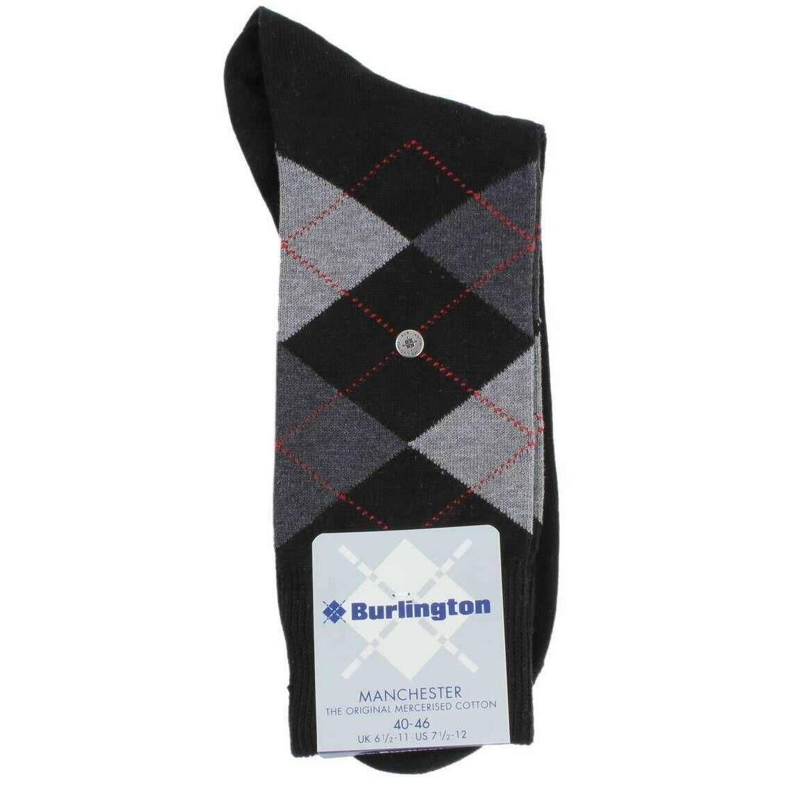 Burlington Argyle Mercerised Cotton Socks -Black/Gray