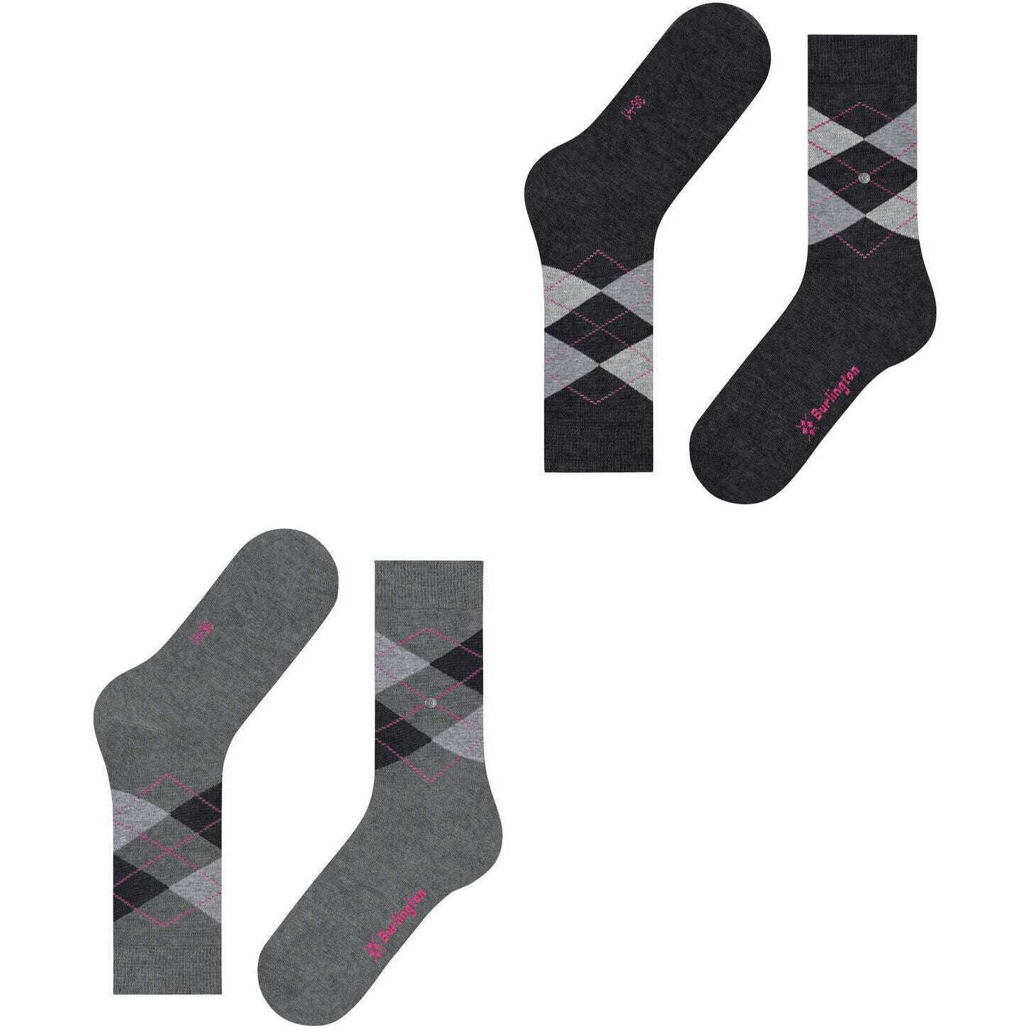 Burlington Everyday Argyle 2 パック ソックス - ライトグレーメル