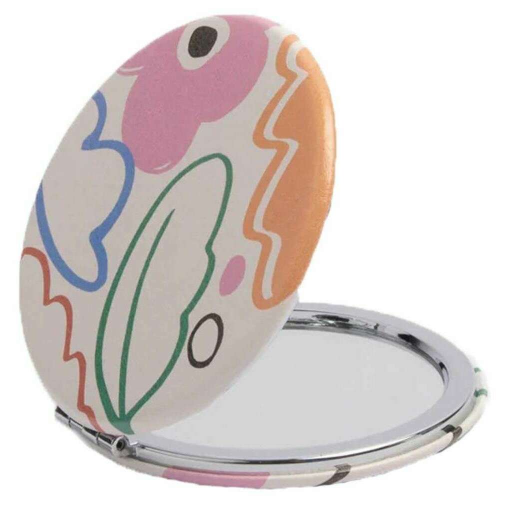 Caroline Gardner 抽象的なボタニカル ラウンド ポケット ミラー - マルチカラー