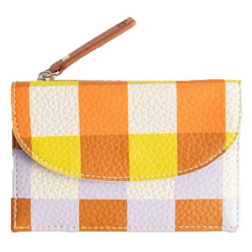 Caroline Gardner Check Cardholder Coin Purse - Pink/White/Orange