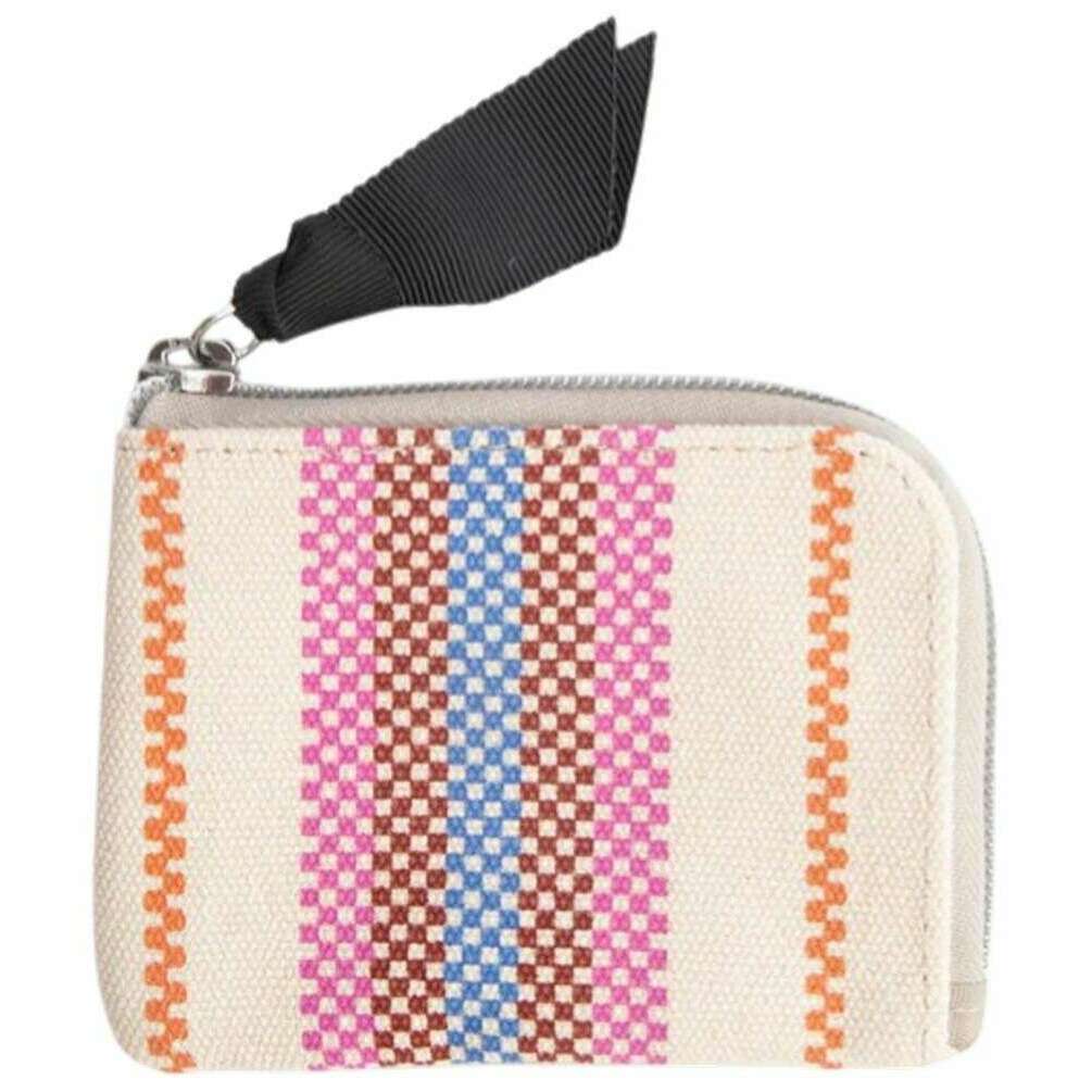 Caroline Gardner チェッカーボード ストライプ プリント キャンバス コーナー財布 - ホワイト/パープル/オレンジ