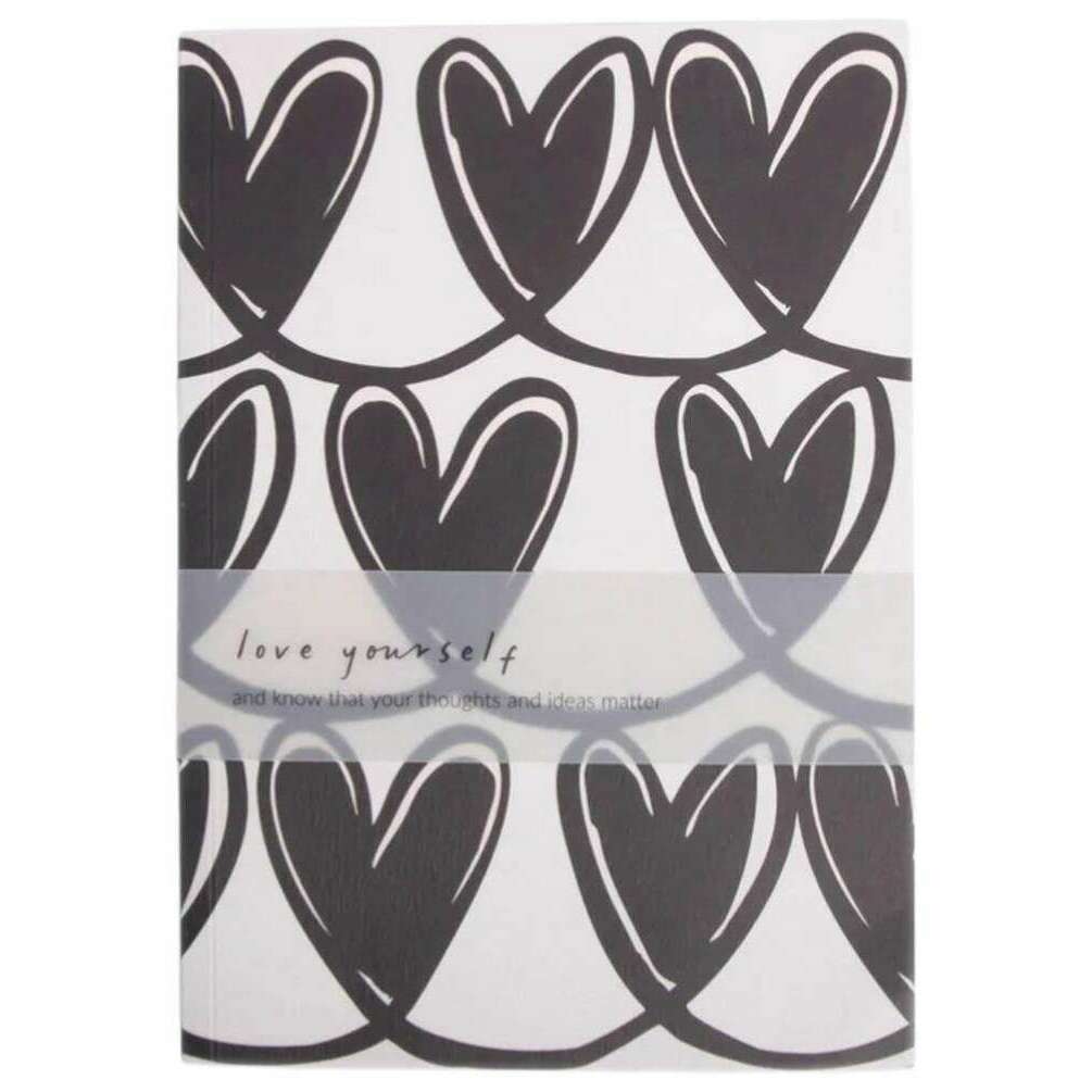 キャロライン ガードナー モノ リンクト ハーツ A5 ソフトバック ノートブック - ブラック/クリーム