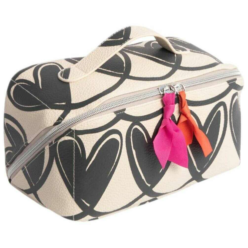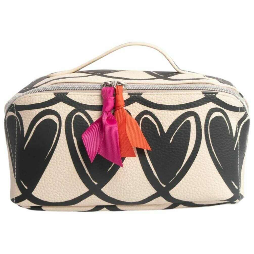 Caroline Gardner Mono Linked Hearts ラージ ダイアゴナル ウォッシュ バッグ - ブラック/クリーム