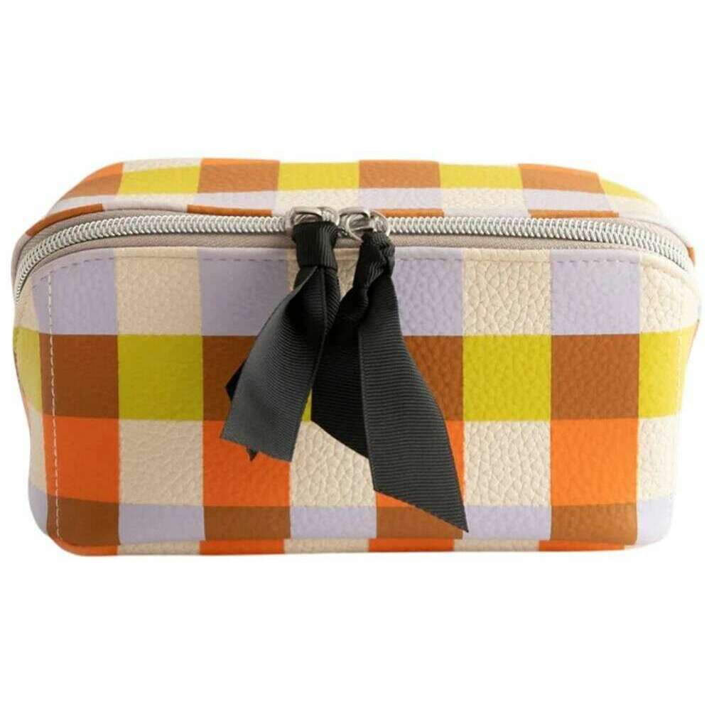 Caroline Gardner マルチチェック斜めウォッシュバッグ - ホワイト/パープル/オレンジ