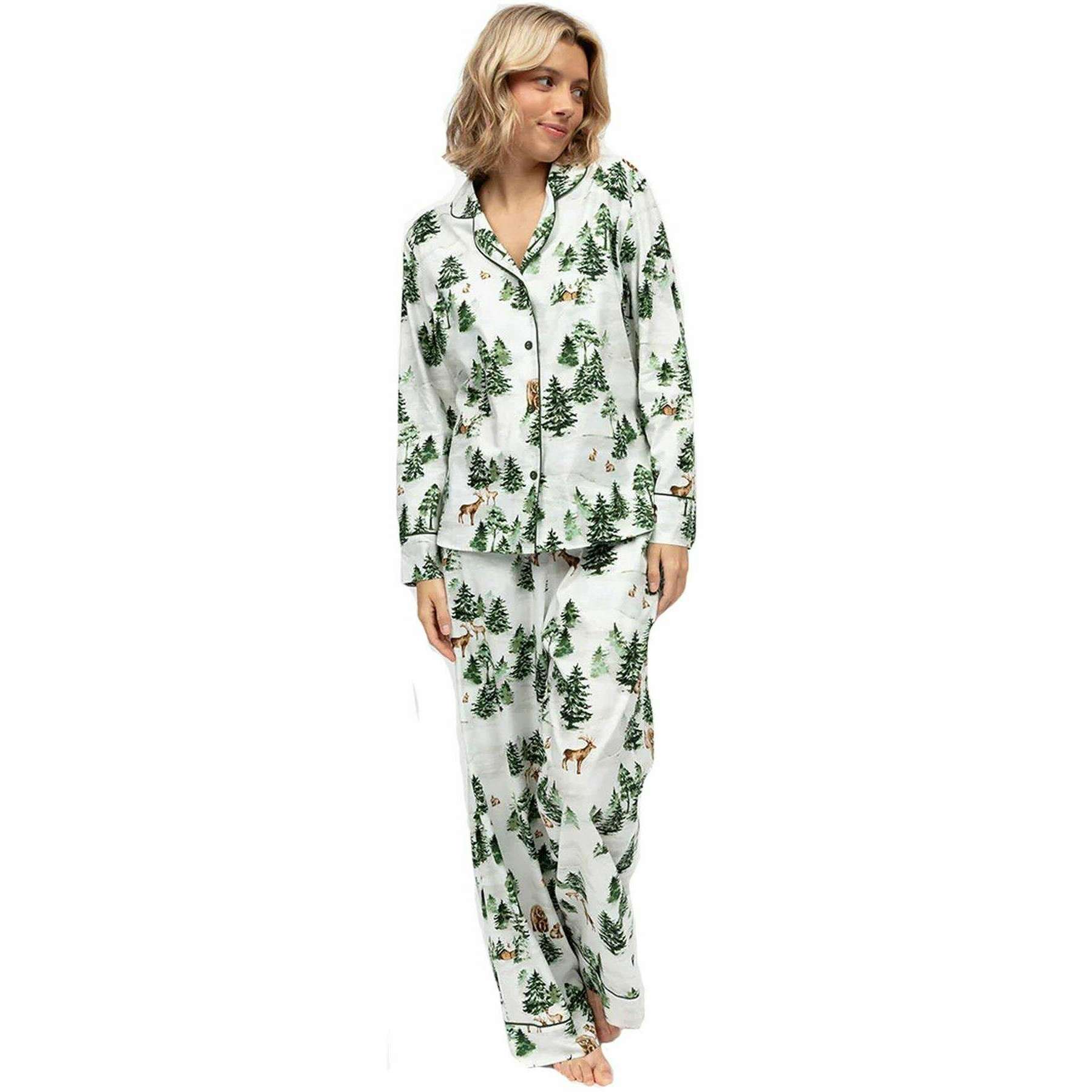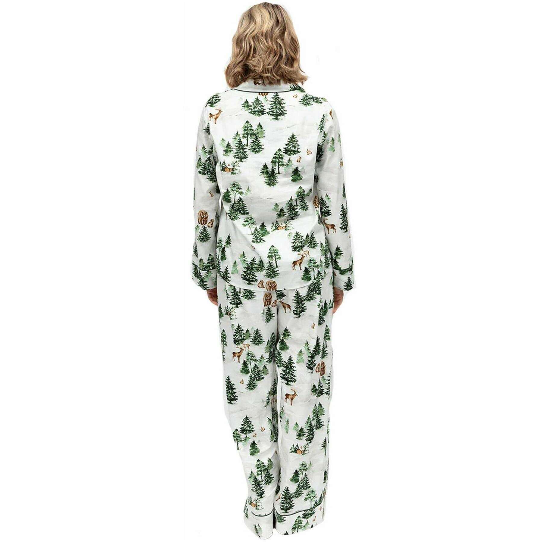 Cyberjammies ブランドのこれらの女性用シダ高山プリント ジャージ パジャマ セットは、コットン 60%、モダール 40% で作られており、グリーンで表示されています。また、オリーブグリーン/ホワイトのパジャマは花柄でデザインされています。これらのパジャマを良好な状態に保つために、裏返しにして洗濯機で洗うことをお勧めします。浸しないよう、同系色のものと一緒に洗ってください。すべてのパジャマにはサイバージャミーのタグが付いています。 Cyber​​jammies Fern Alpine Print Jersey パジャマ セット - オリーブ グリーン/ホワイトは、ダウンタイムに心地よい冬の雰囲気をもたらします。柔らかいコットンとモダールのブレンドで作られたこのセットは、さわやかな白地に松の木、小屋、森の動物の穏やかな高山プリントが特徴です。トップスには、リビアカラー、オリーブグリーンのパイピング、テーラード仕上げのくるみボタンが含まれており、ワイドレッグボトムスは伸縮性のあるバック、フラットフロント、調節可能なドローストリング、サイドポケットを備えており、快適さと履きやすさを提供します。お祝いの朝やリラックスした夜に最適なこのセットは、季節の魅力と日常の贅沢を組み合わせています。