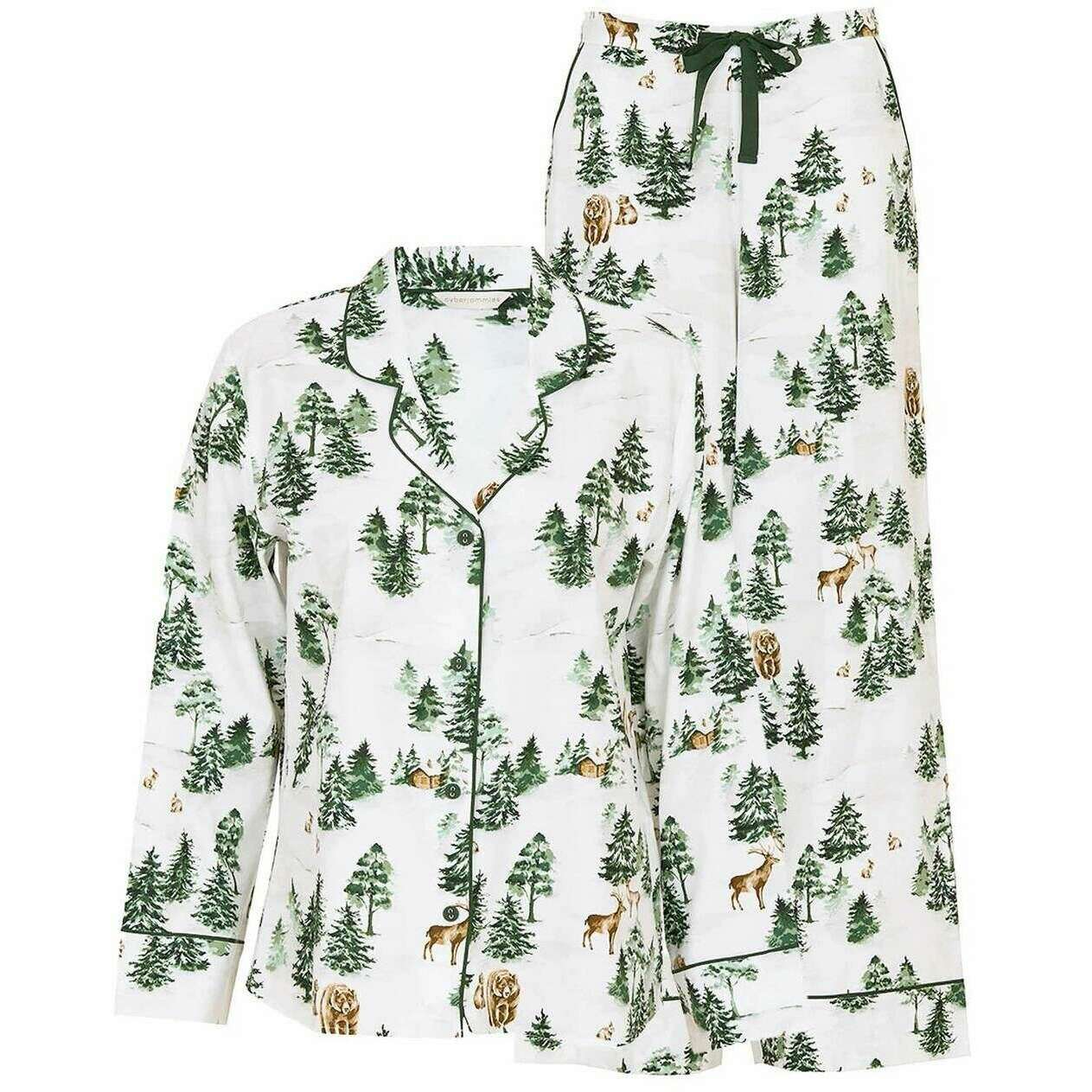Cyberjammies シダ アルパイン プリント ジャージ パジャマ セット - オリーブ グリーン/ホワイト