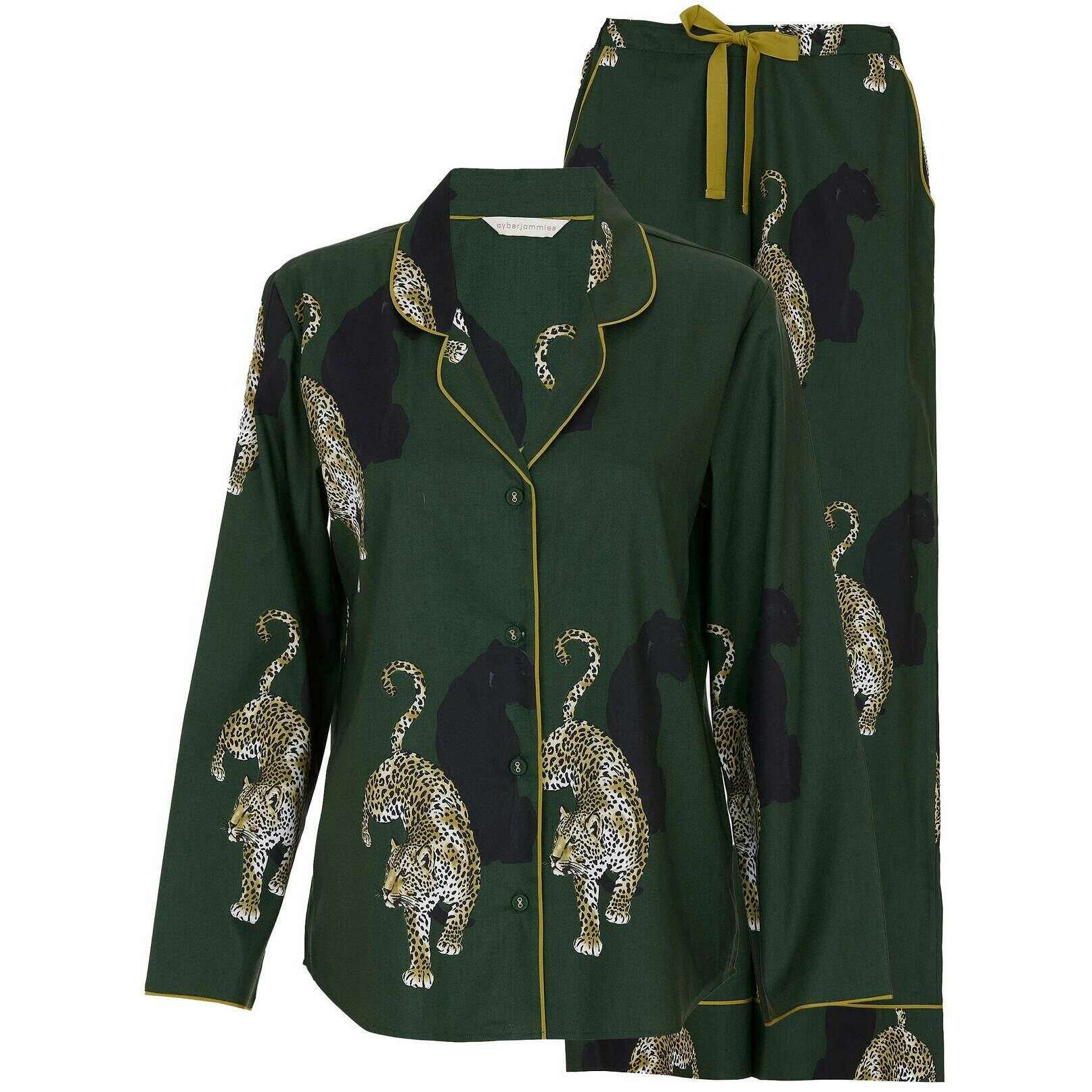 Cyberjammies オリーブ ヒョウ柄 長袖 ワイドレッグ パジャマ セット - グリーン/ゴールド
