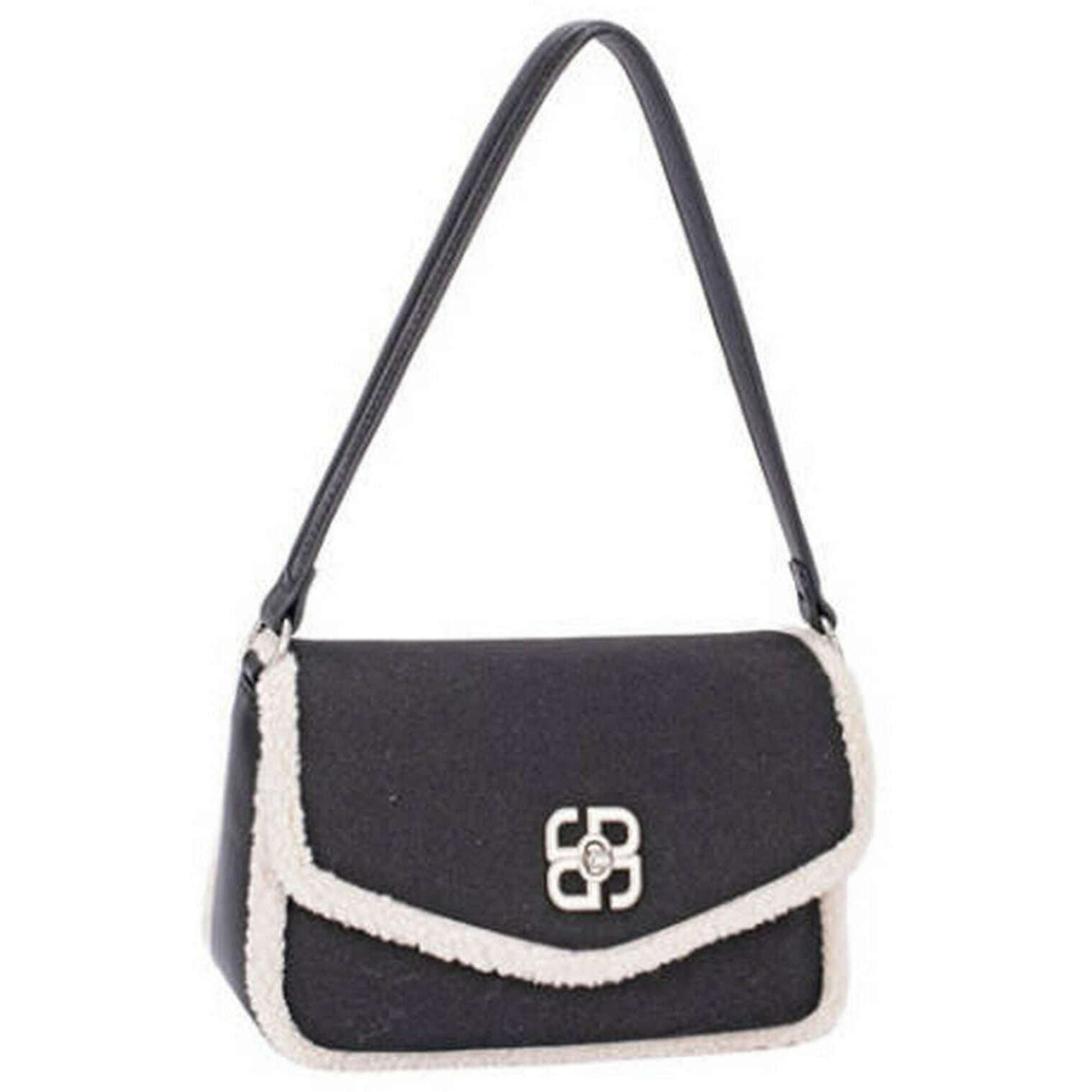 David Jones フェイク ムートン フラップ ショルダー バッグ - ブラック