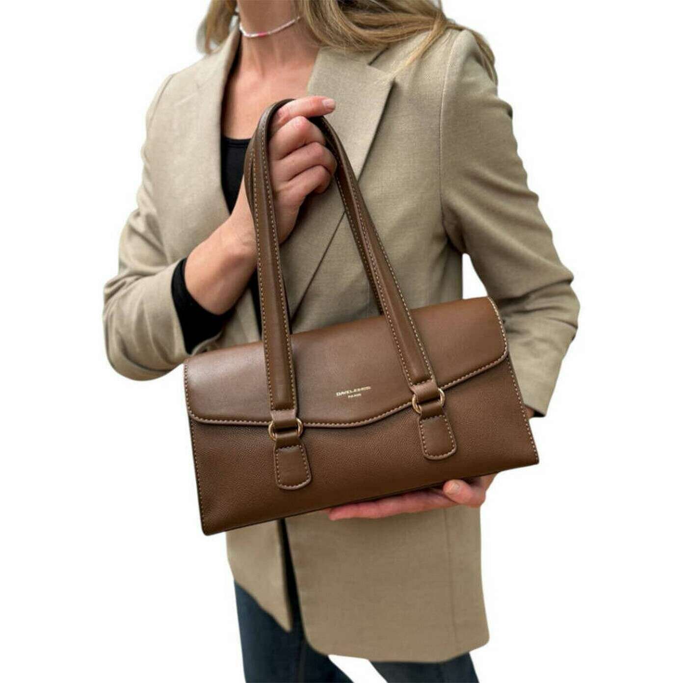 David Jones ロング ハーフ フラップ ショート ショルダー バッグ - ココアブラウン