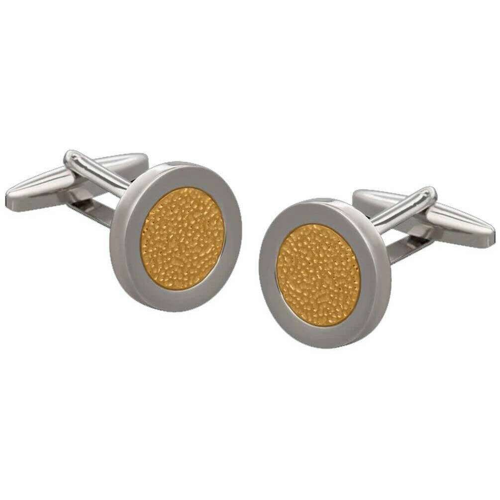 デザイナーが地金から製造したシルバー/ゴールドのメンズ ハンマード メタル カフリンクスです。 David Van Hagen. すべてのカフリンクスには、デビッド ヴァン ハーゲンのパッケージが付属しています。の David Van Hagen ハンマードメタルカフス - シルバー/ゴールドは、ユニークなシルバーとゴールドのハンマードデザインが特徴で、フォーマルな服装に最適なアクセサリーです。