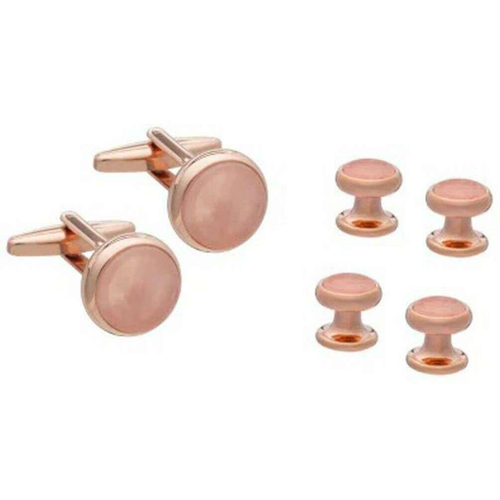 David Van Hagen ローズ クォーツ ドレス スタッドとカフスボタン ​​セット - ピンク/ローズゴールド
