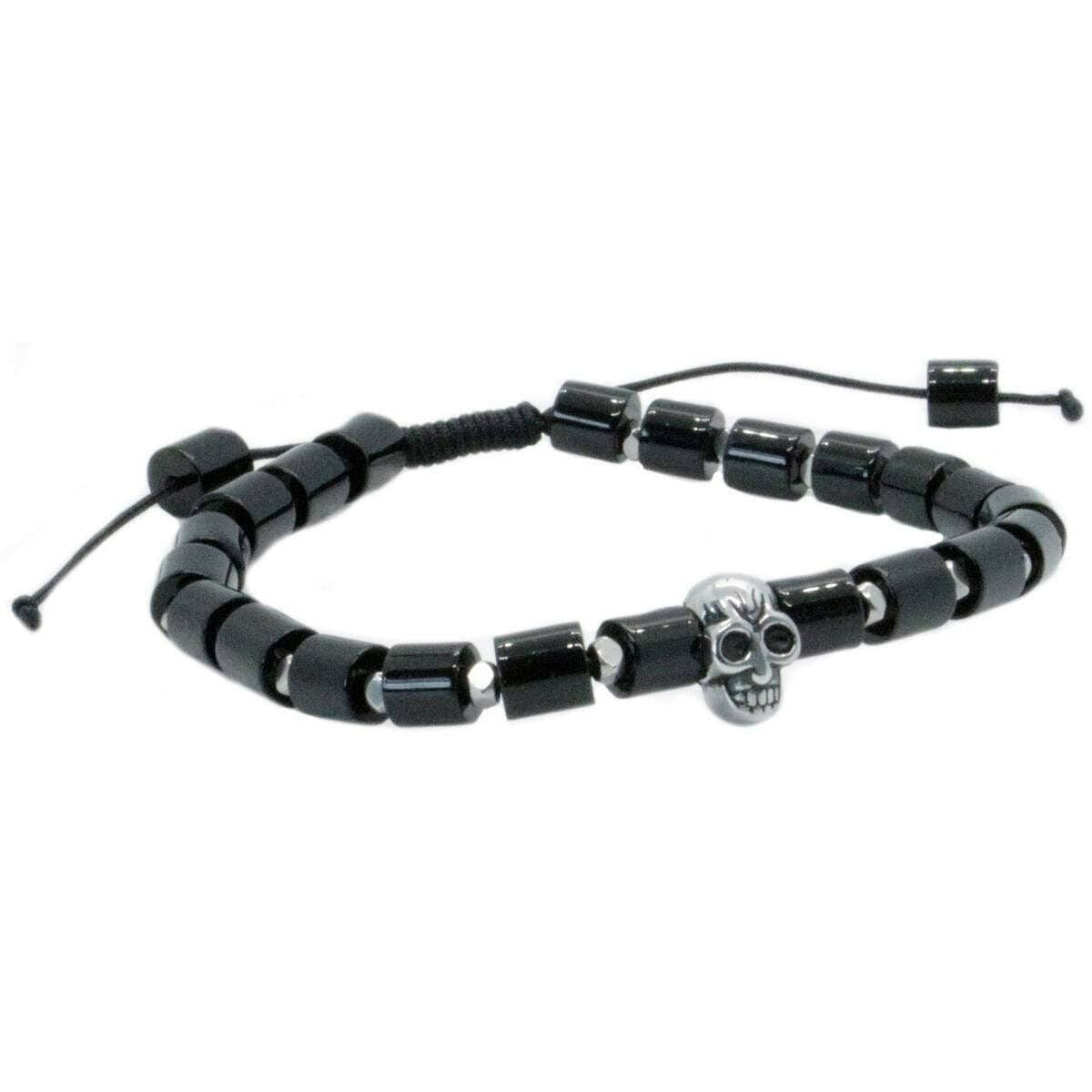 David Van Hagen スカル ビーズ アゲート ブレスレット - ブラック
