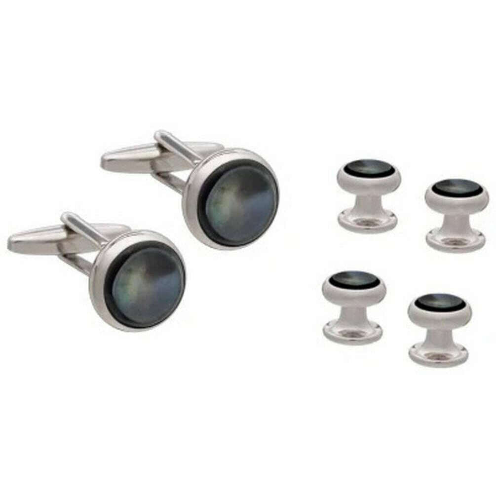 David Van Hagen スモーキー マザー オブ パール ドレス スタッドとカフスボタン ​​セット - グレー/シルバー