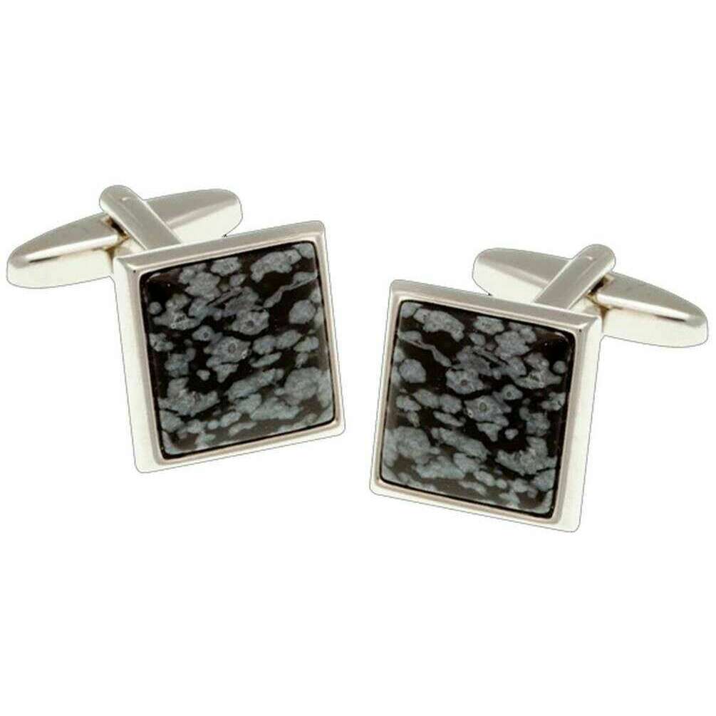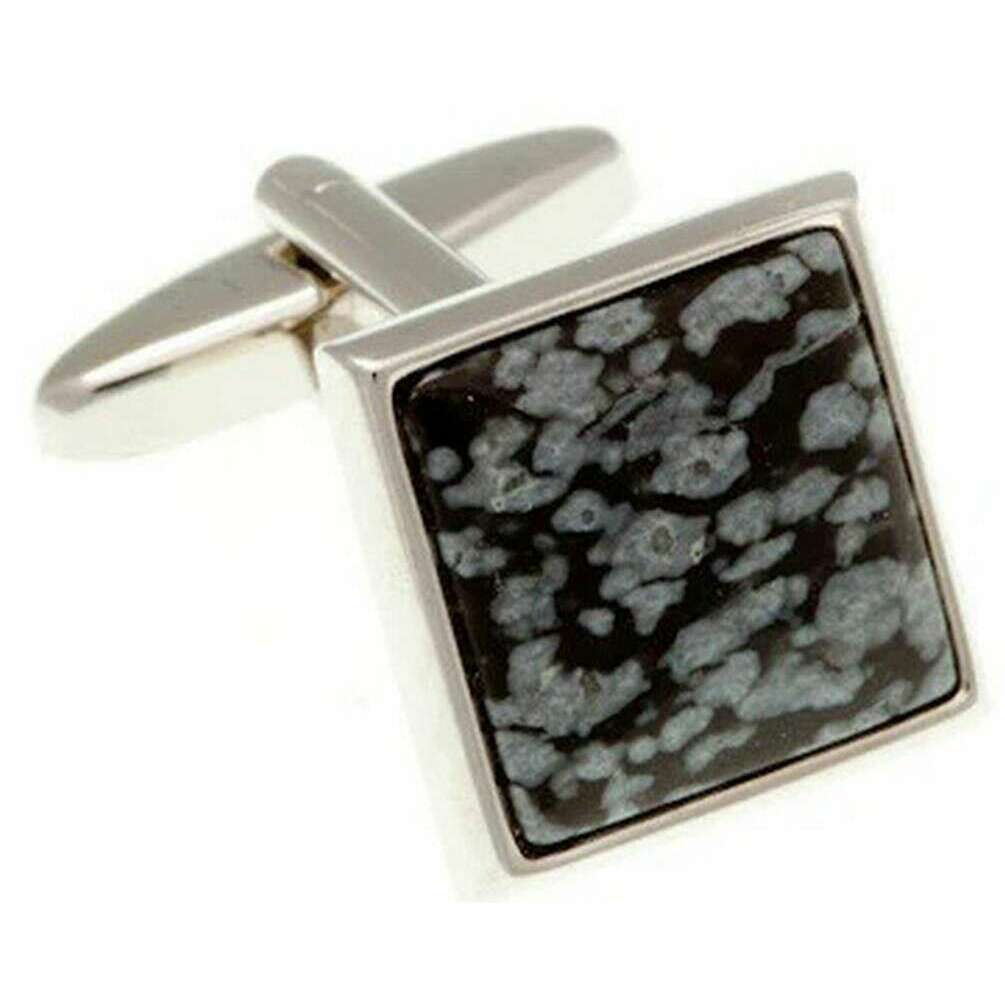 • カボション半貴石スノーフレークストーン、ポリッシュエッジ、スタンダードカフスボタンバスキュール