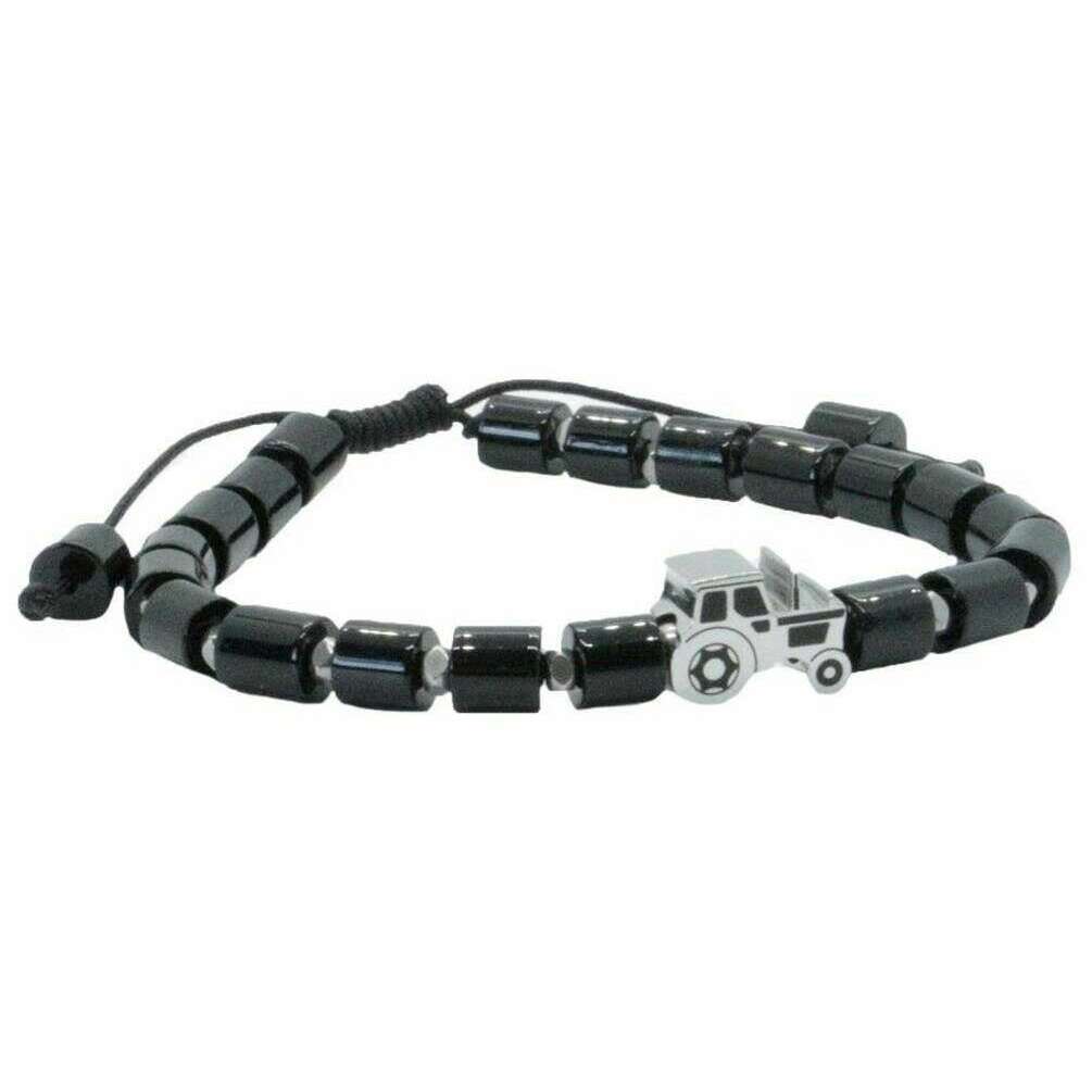 David Van Hagen トラクター ビーズ アゲート ブレスレット - ブラック