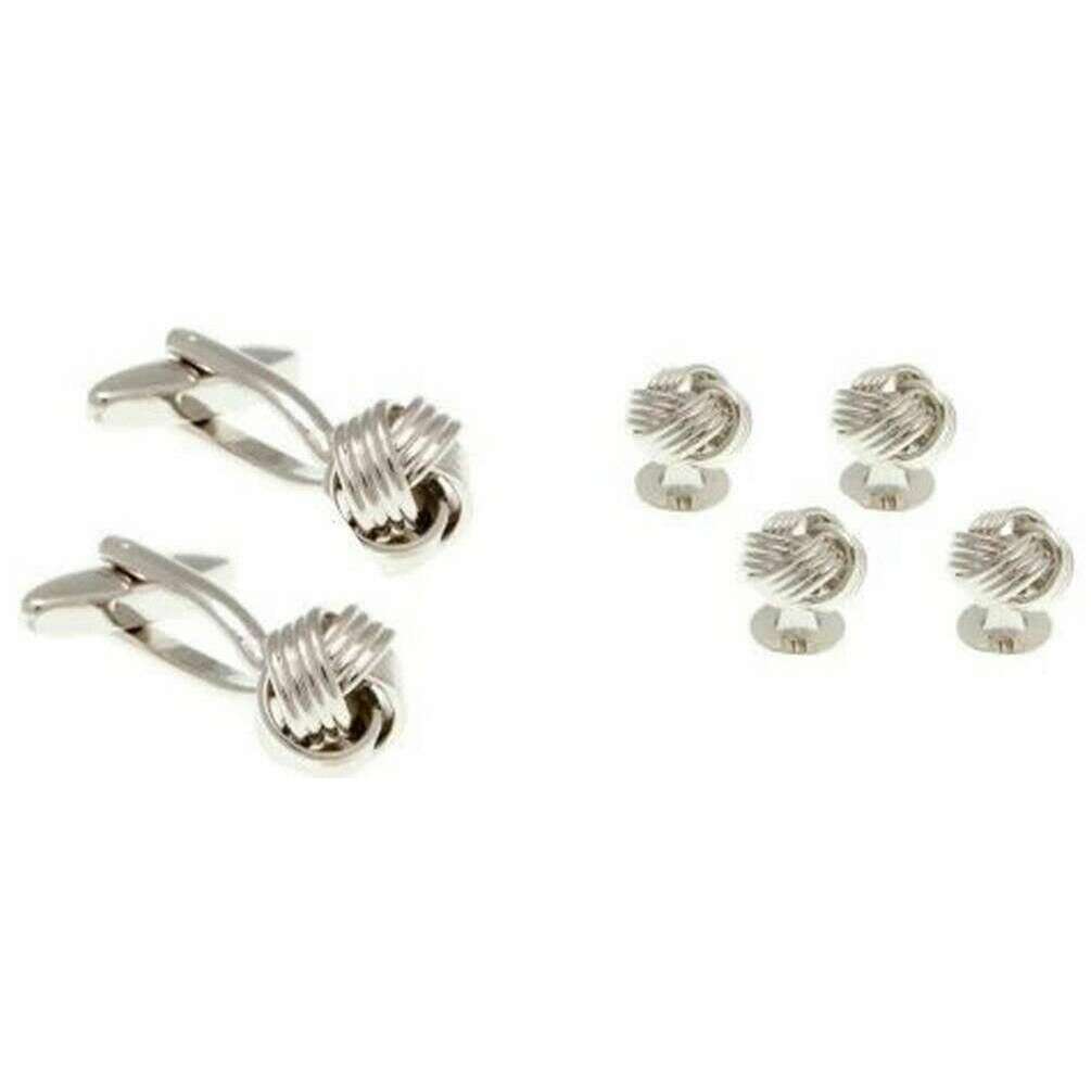 David Van Hagen ウーブン ノット ドレス スタッドとカフス セット - シルバー