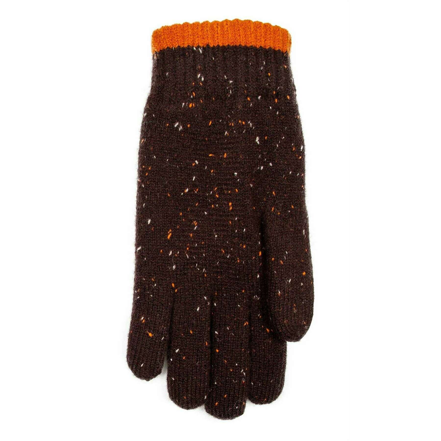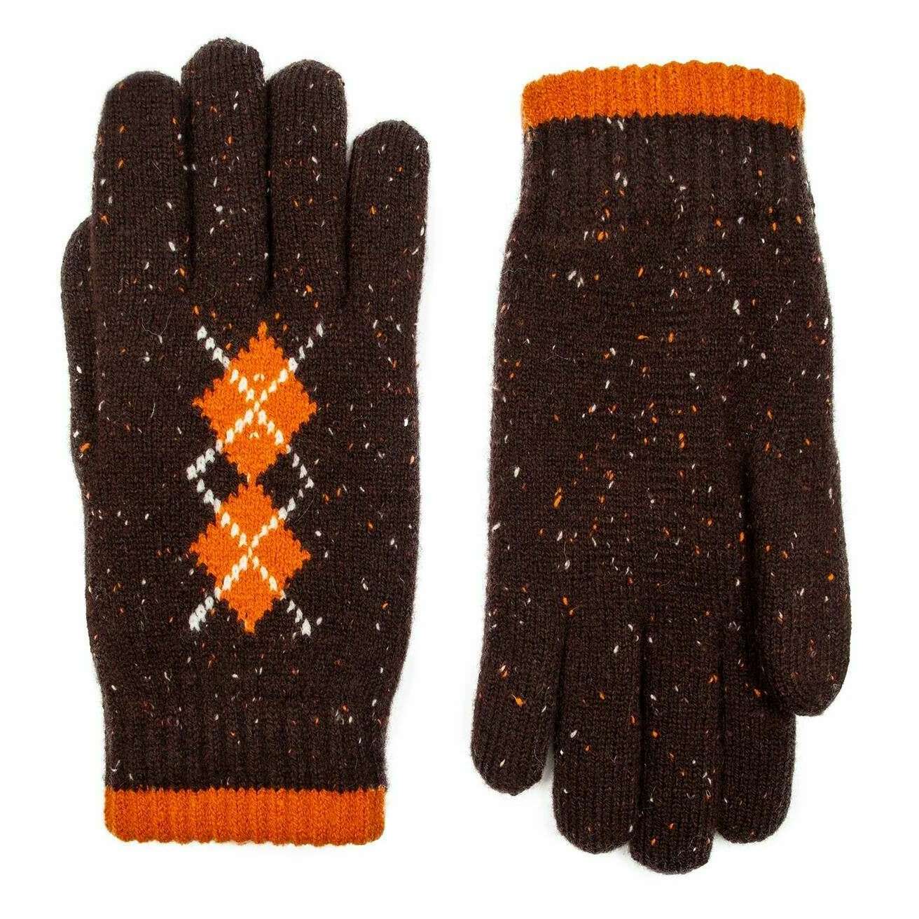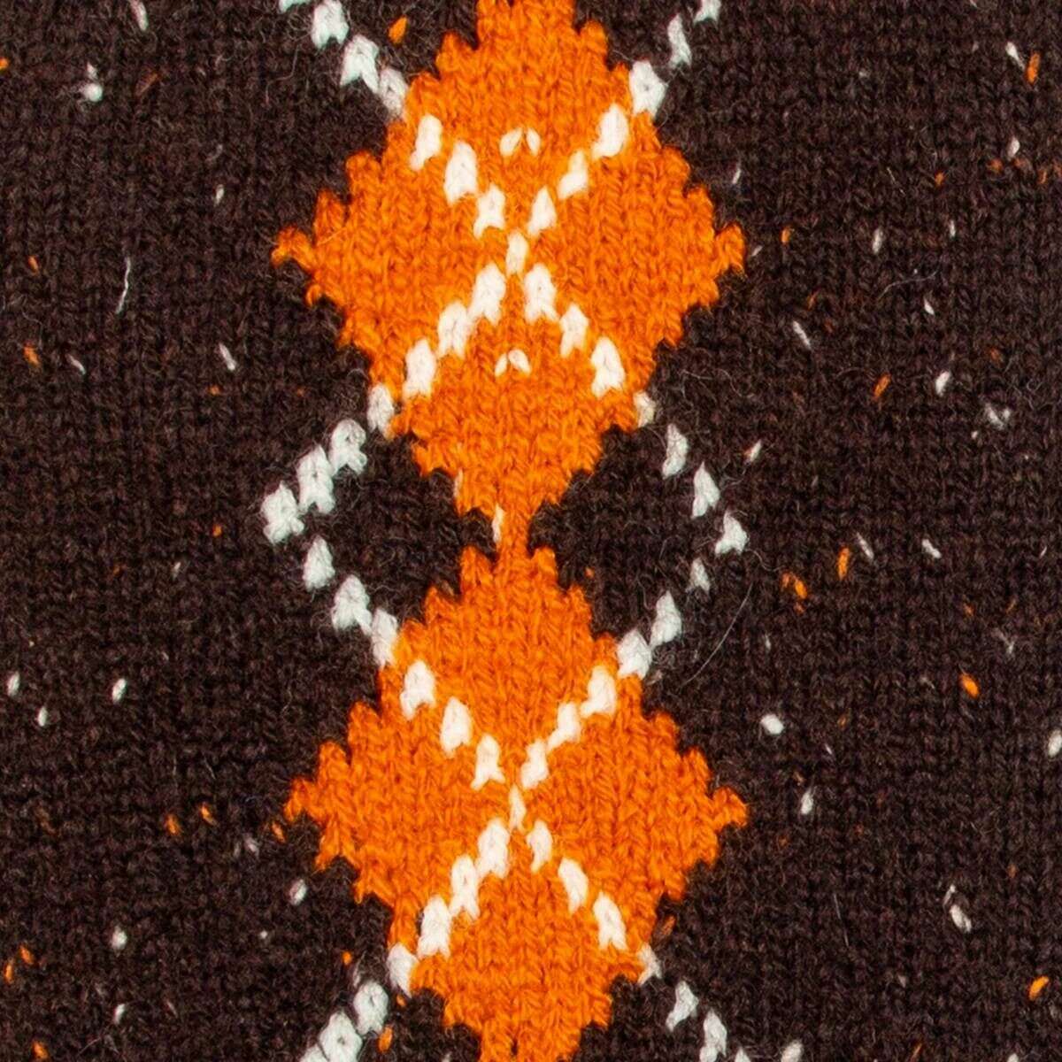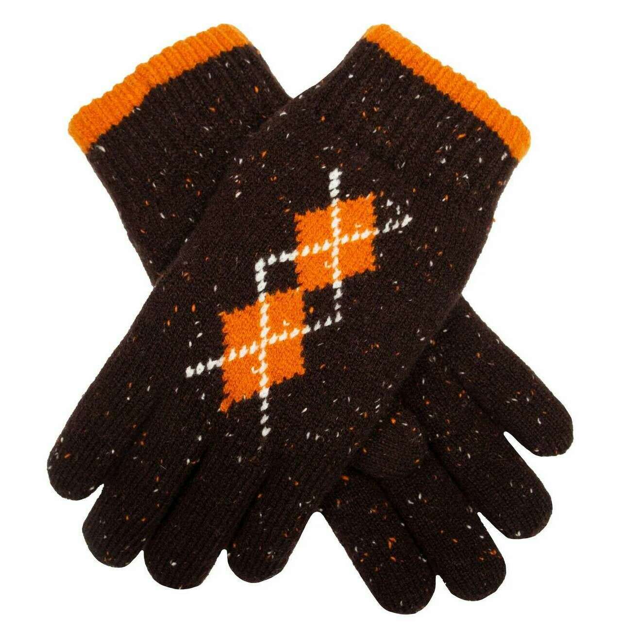 Dents アーガイルマールヤーンニットグローブ - チョコレートブラウン/カボチャオレンジ