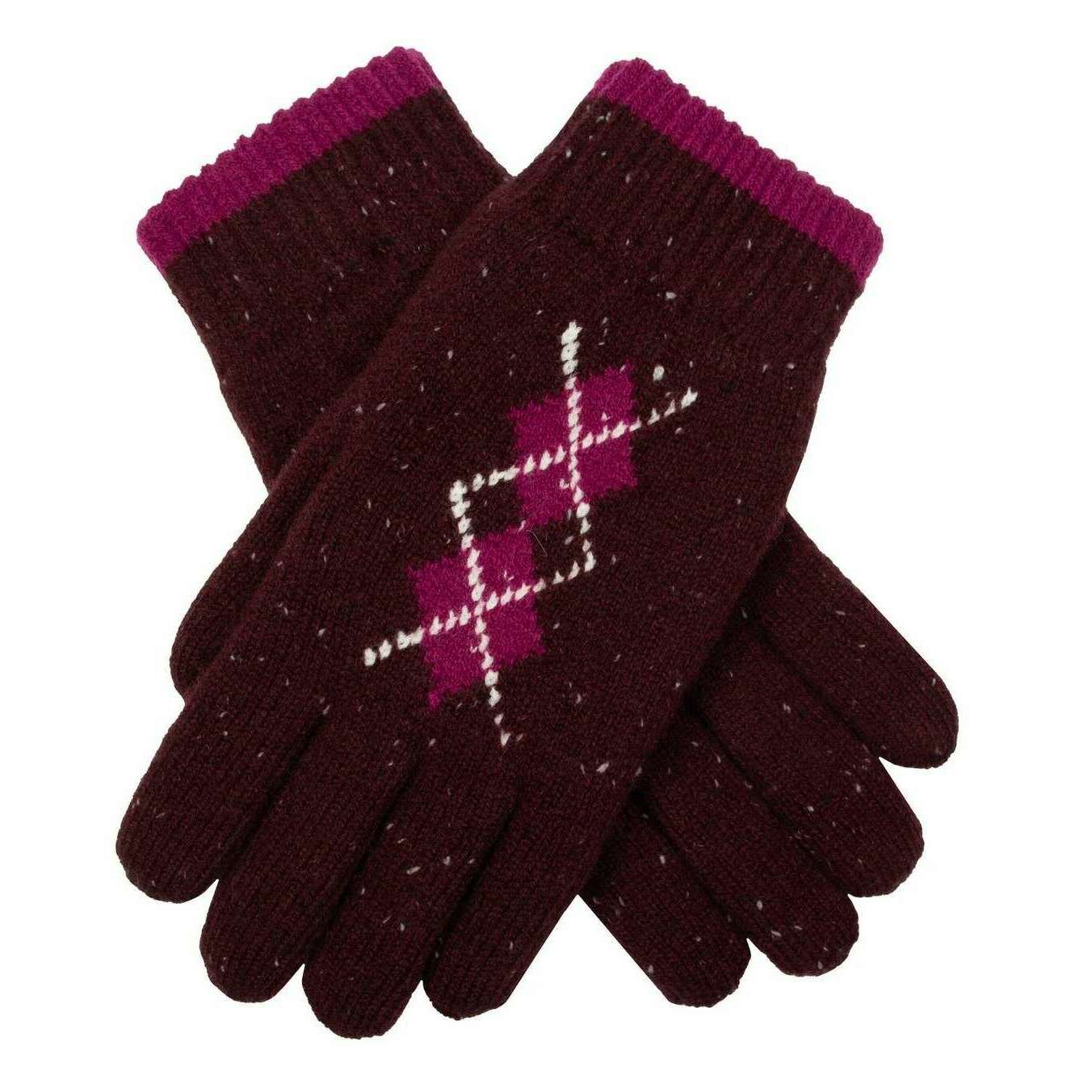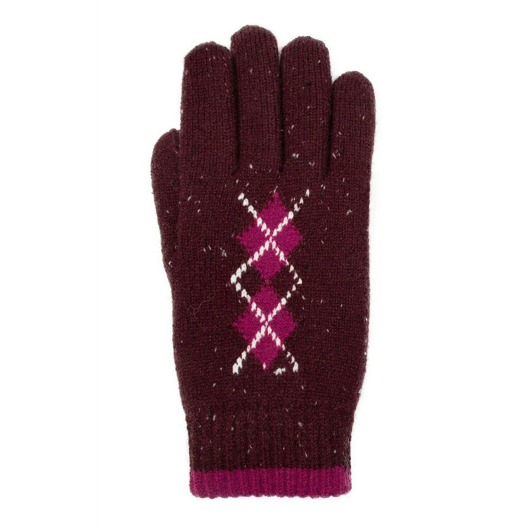 Dents アーガイルマールヤーンニットグローブ - ダムソンブルゴーニュ/カシスピンク