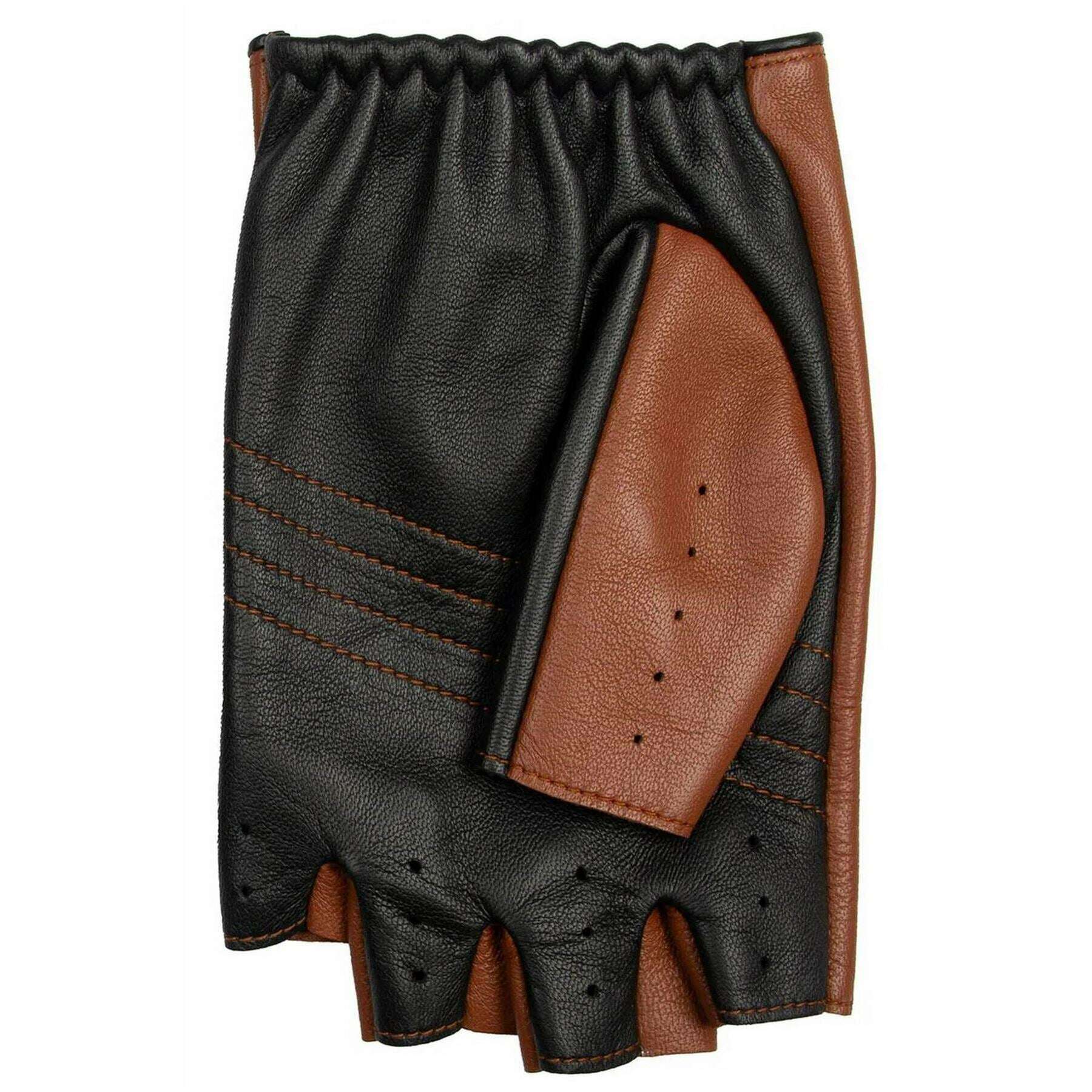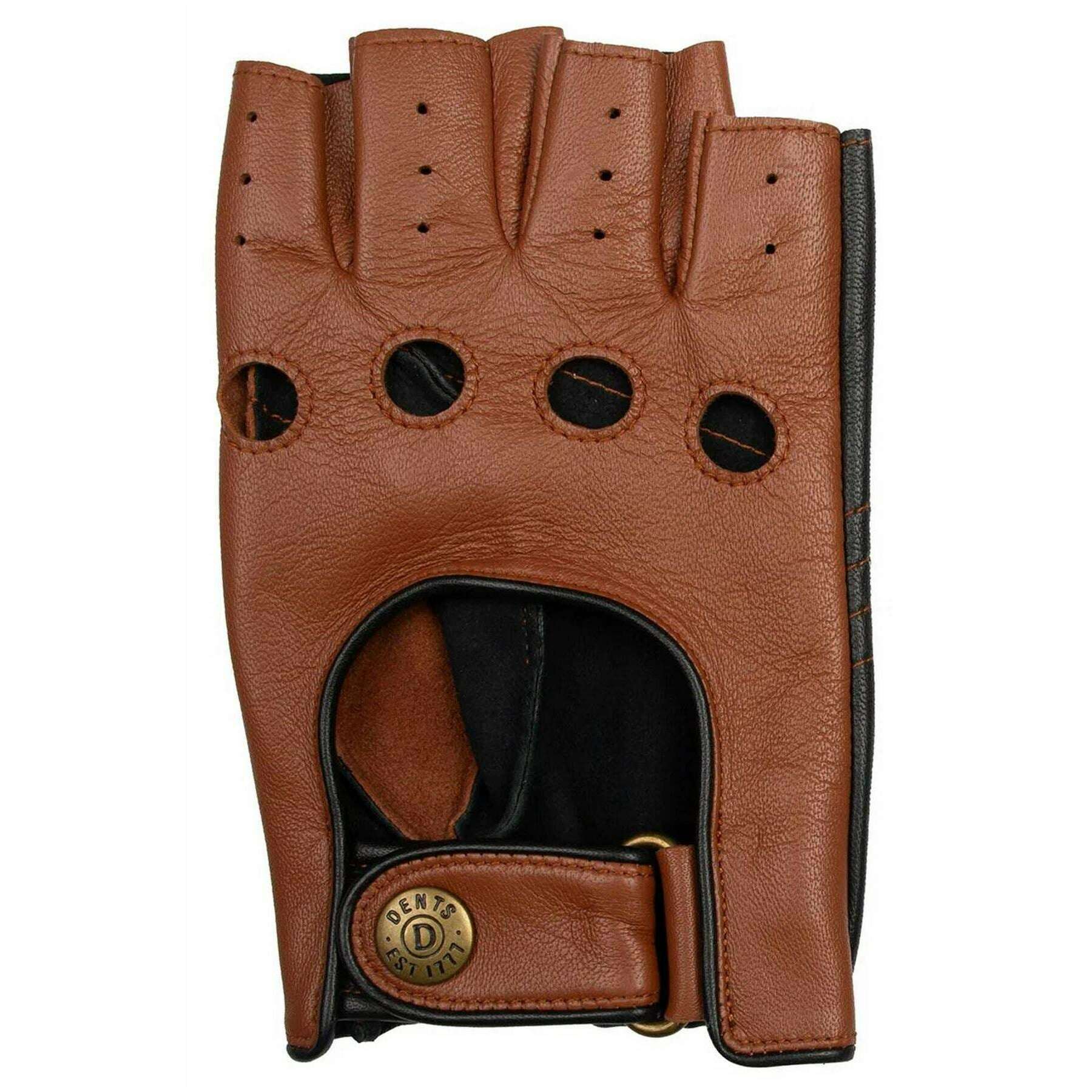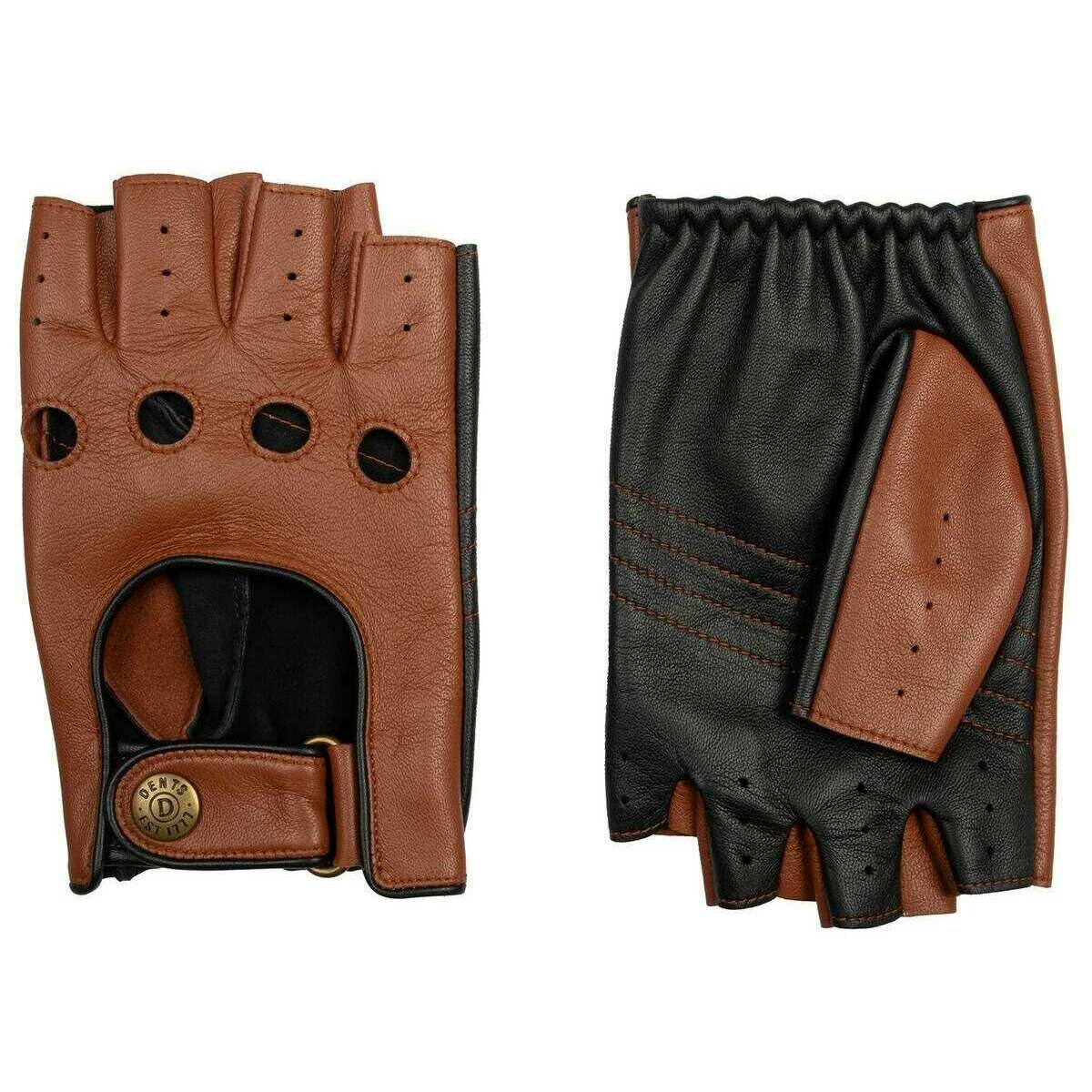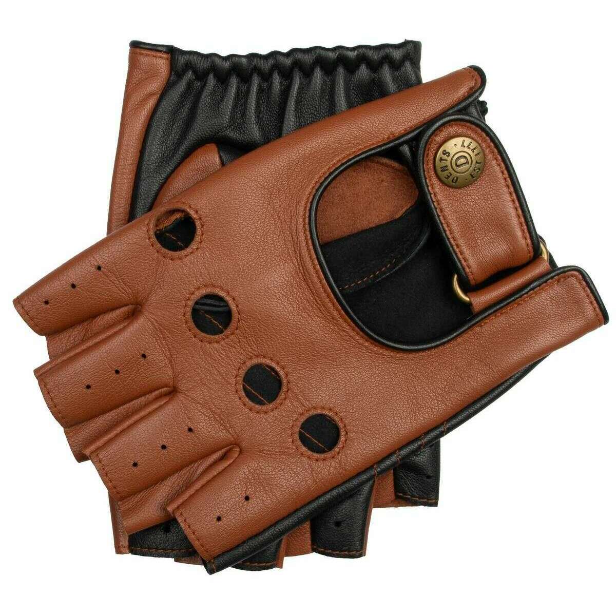 Dents Cadwell フィンガーレス 2 色レザー ドライビング グローブ - コニャック ブラウン/ブラック