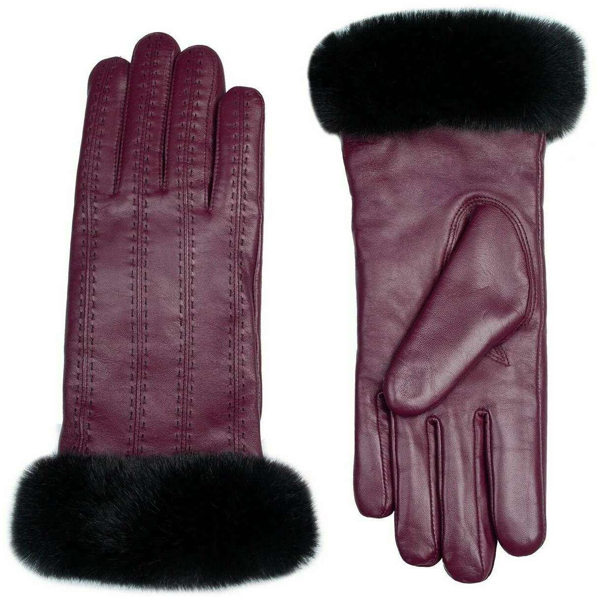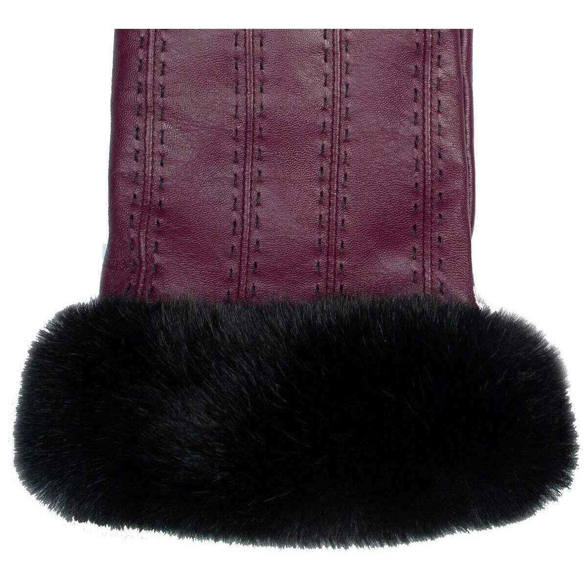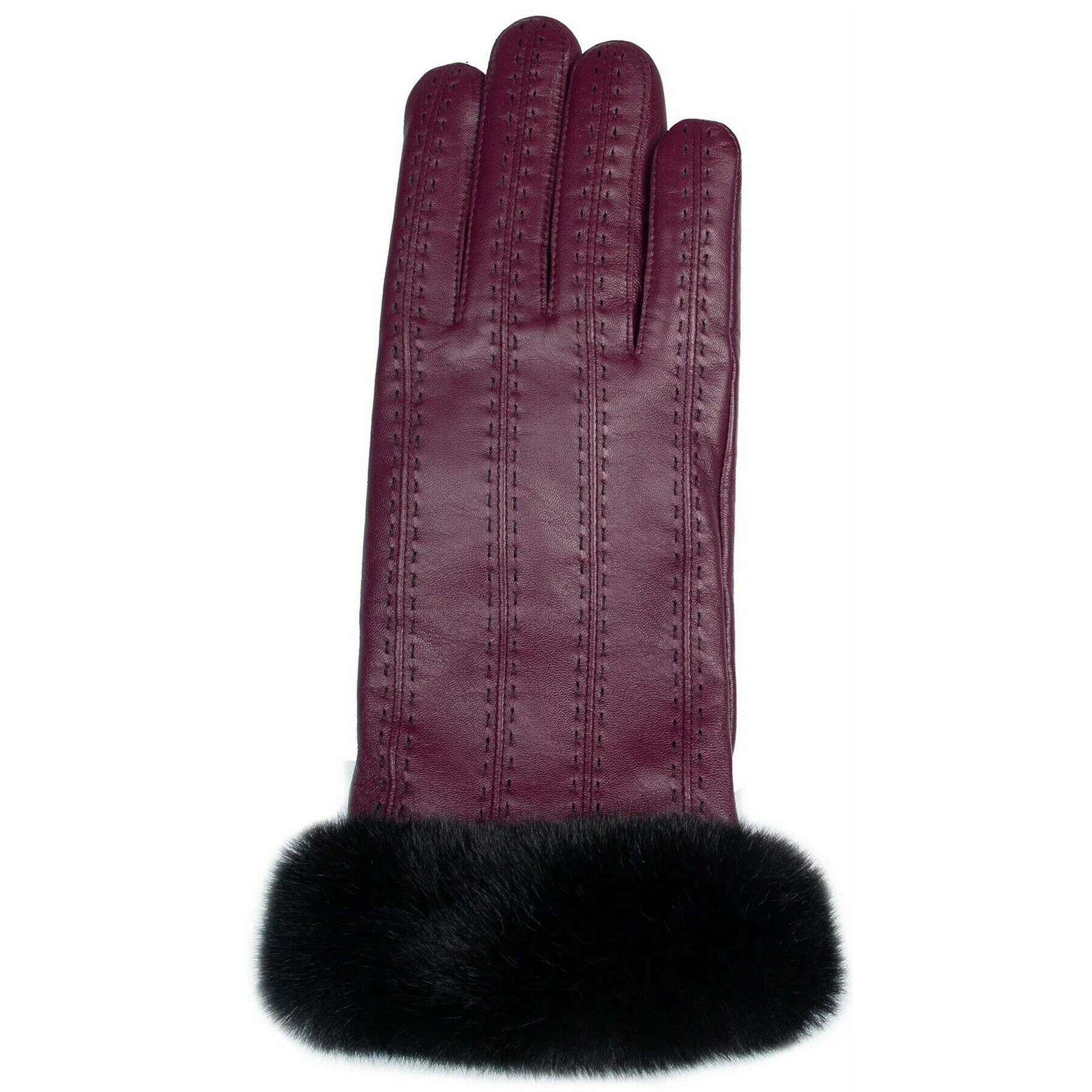 Dents Cassie コントラスト ステッチ レザー グローブ - Damson バーガンディ/ブラック