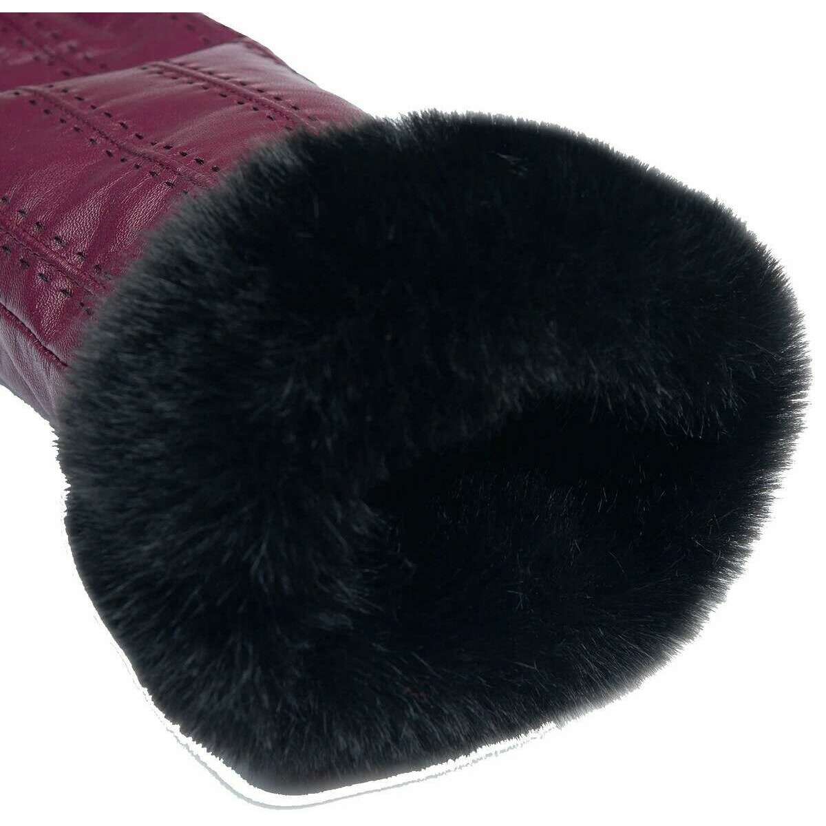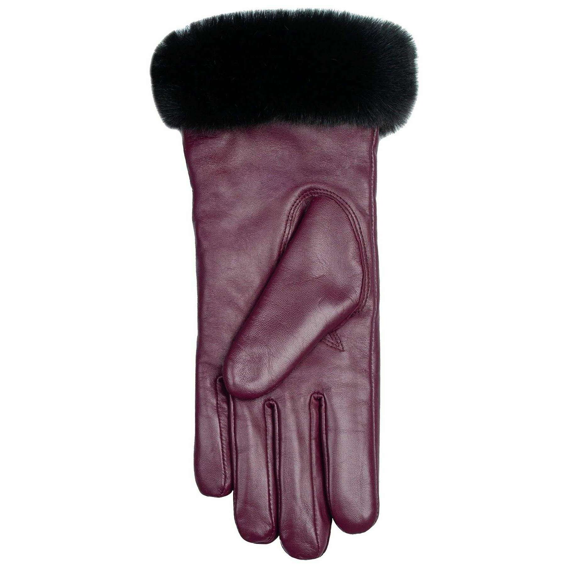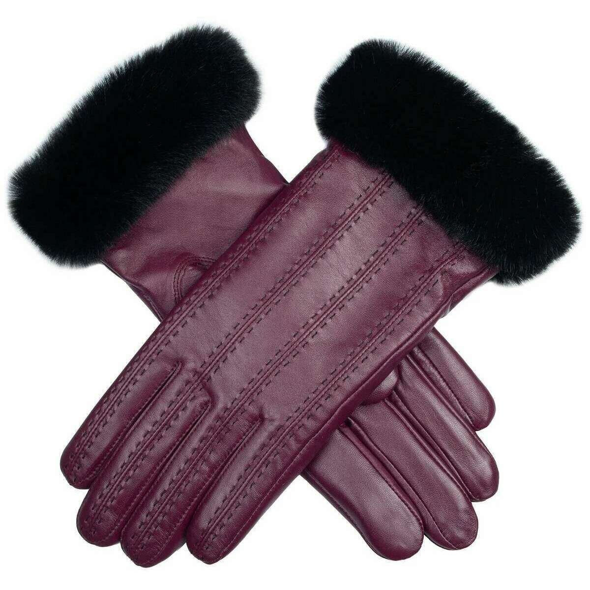 Dents Cassie コントラスト ステッチ レザー グローブ - Damson バーガンディ/ブラック