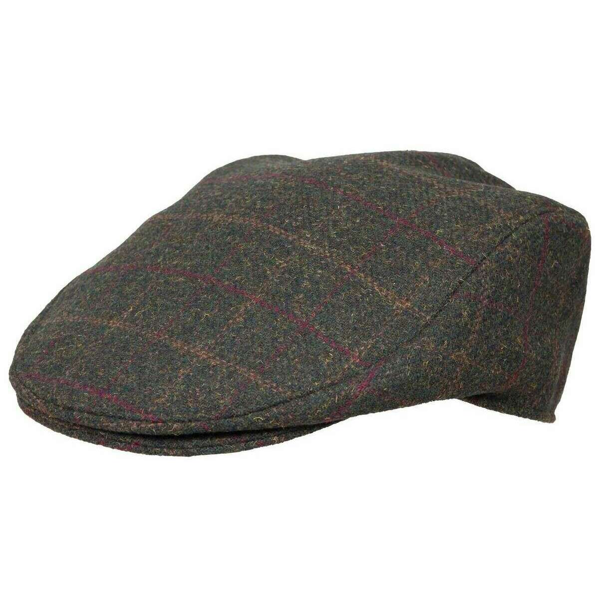 Dents Colliford チェック ツイード フラット キャップ - オリーブグリーン