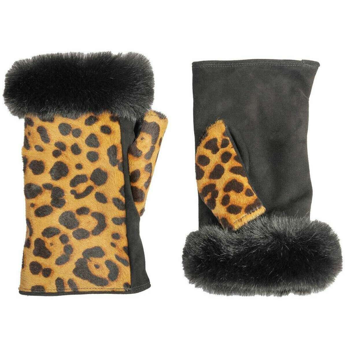 Dents Courtney フィンガーレス ミトン - レオパード/ブラック