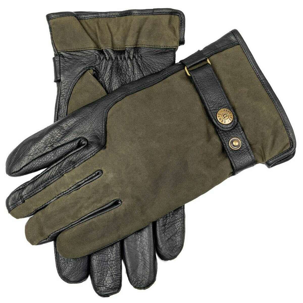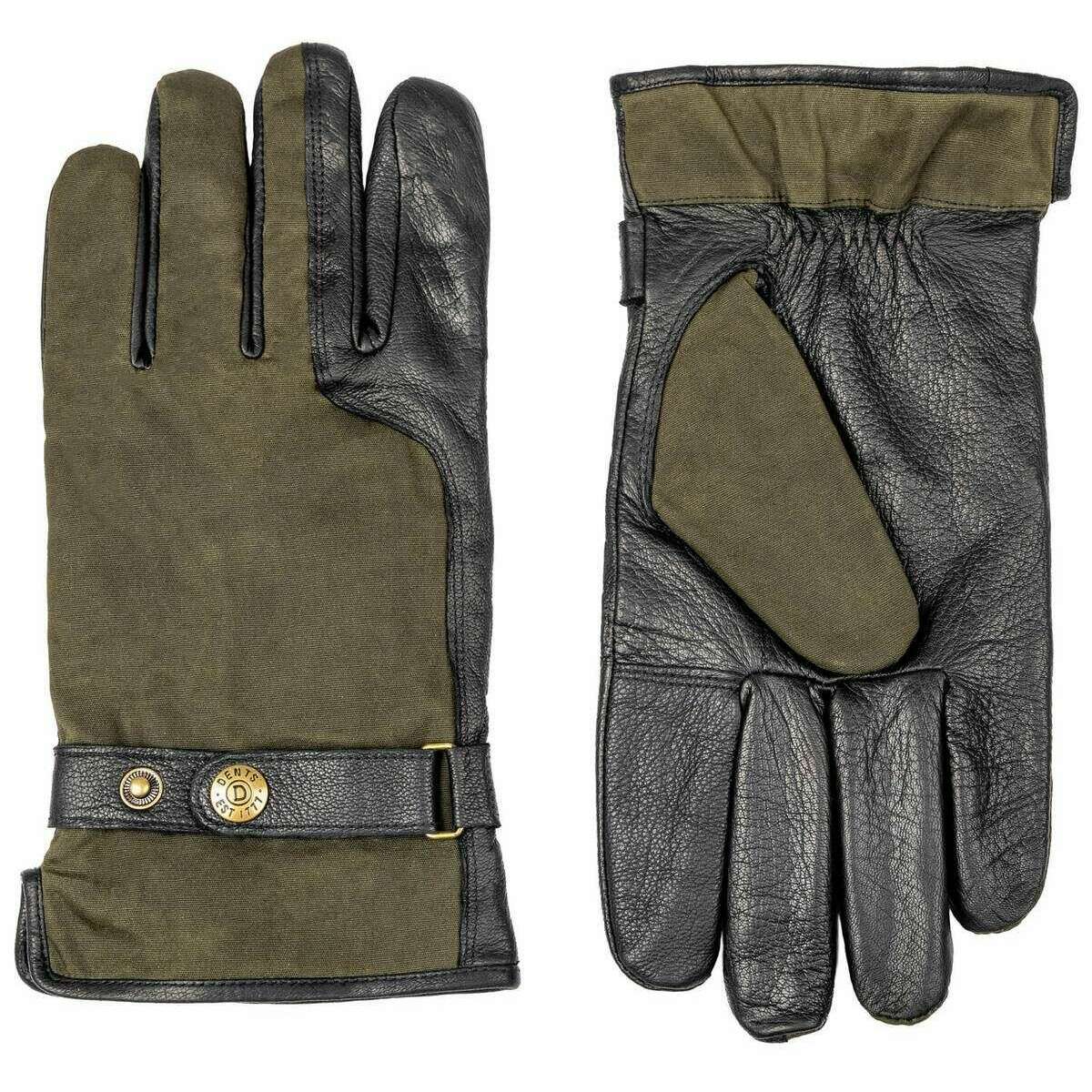 Dents Crewkerne レザー グローブ - ブラック/オリーブ グリーン