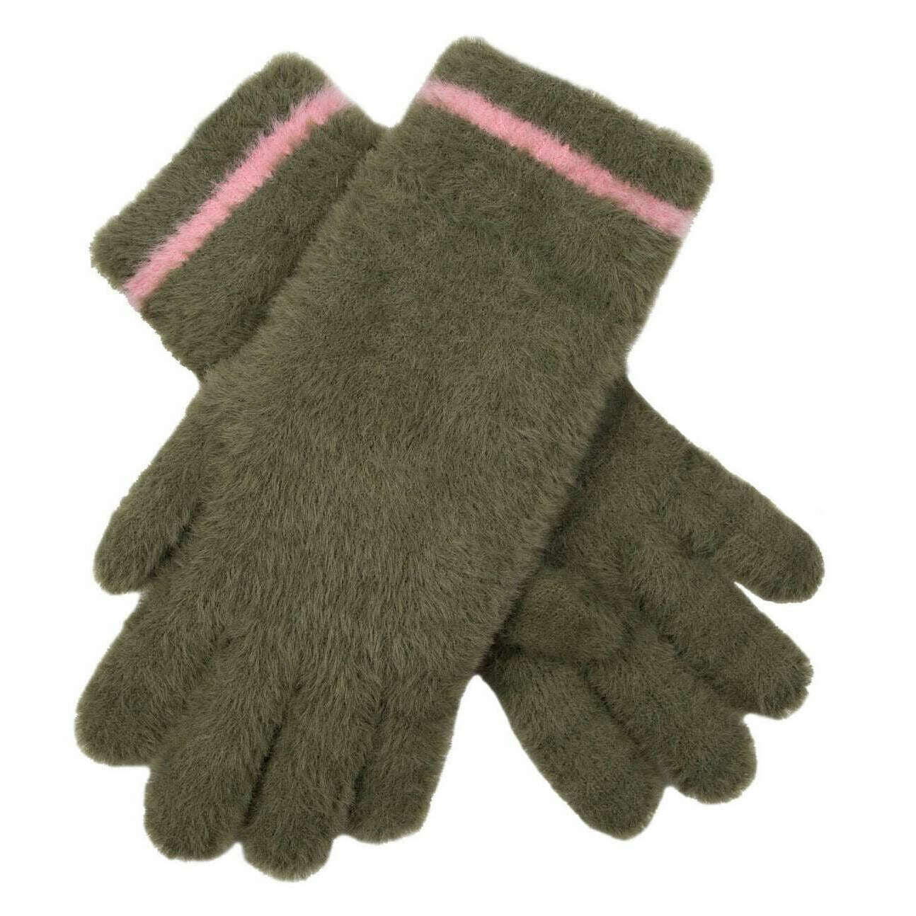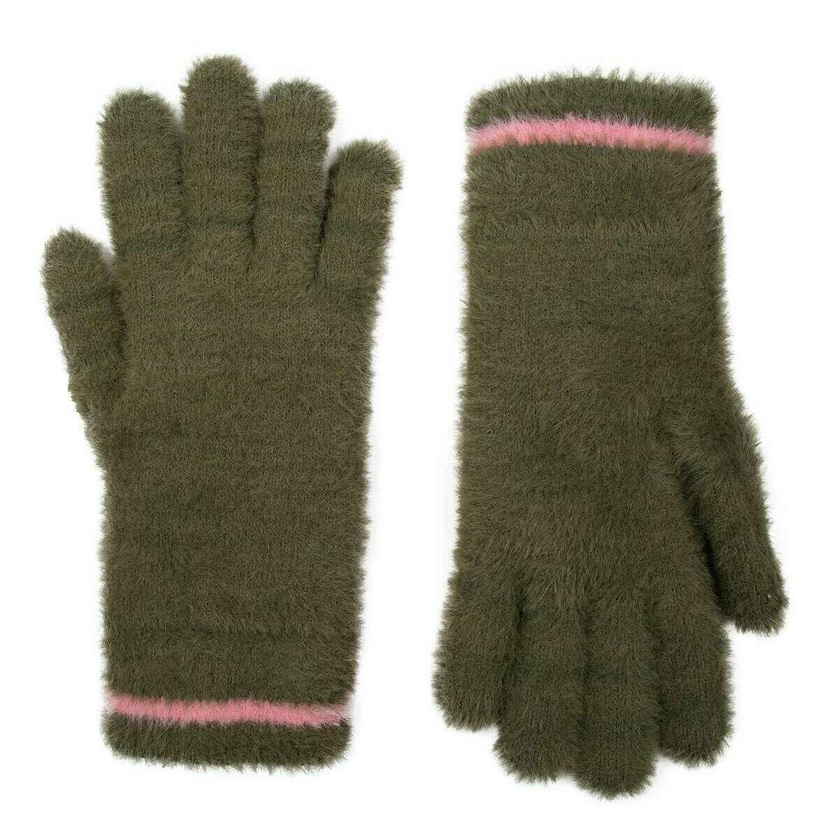 Dents フェザー糸ニットグローブ - 緑/ピンク