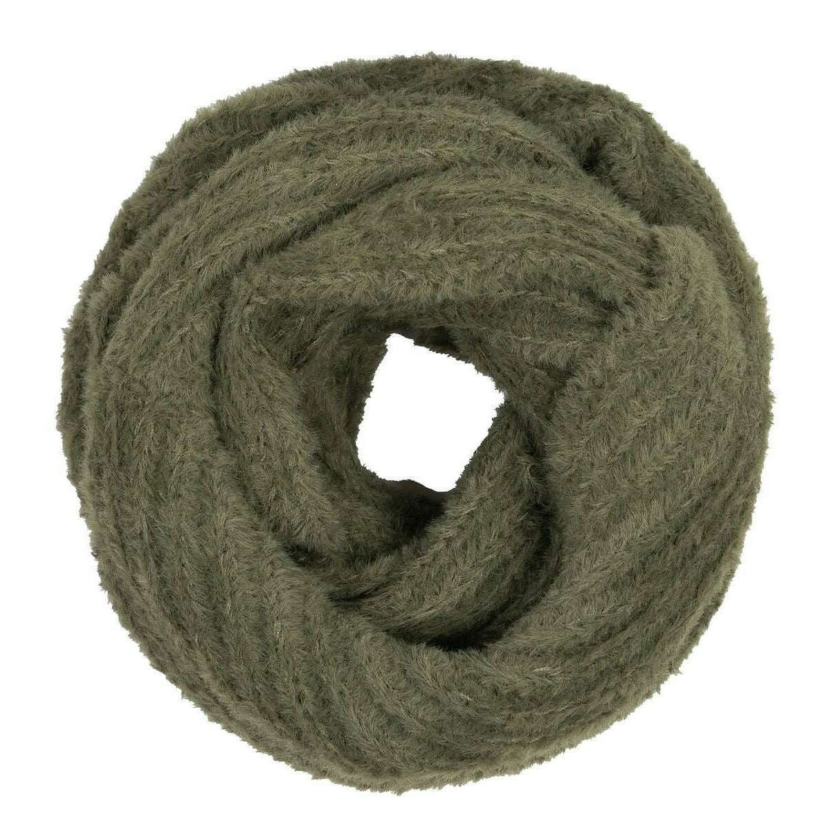 Dents フェザーヤーン ニット スヌード - オリーブグリーン