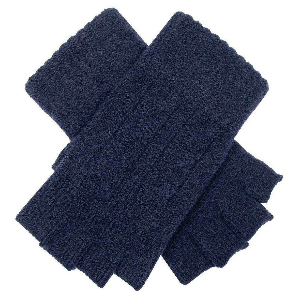 Dents フィンガーレスケーブルニットグローブ - ネイビー