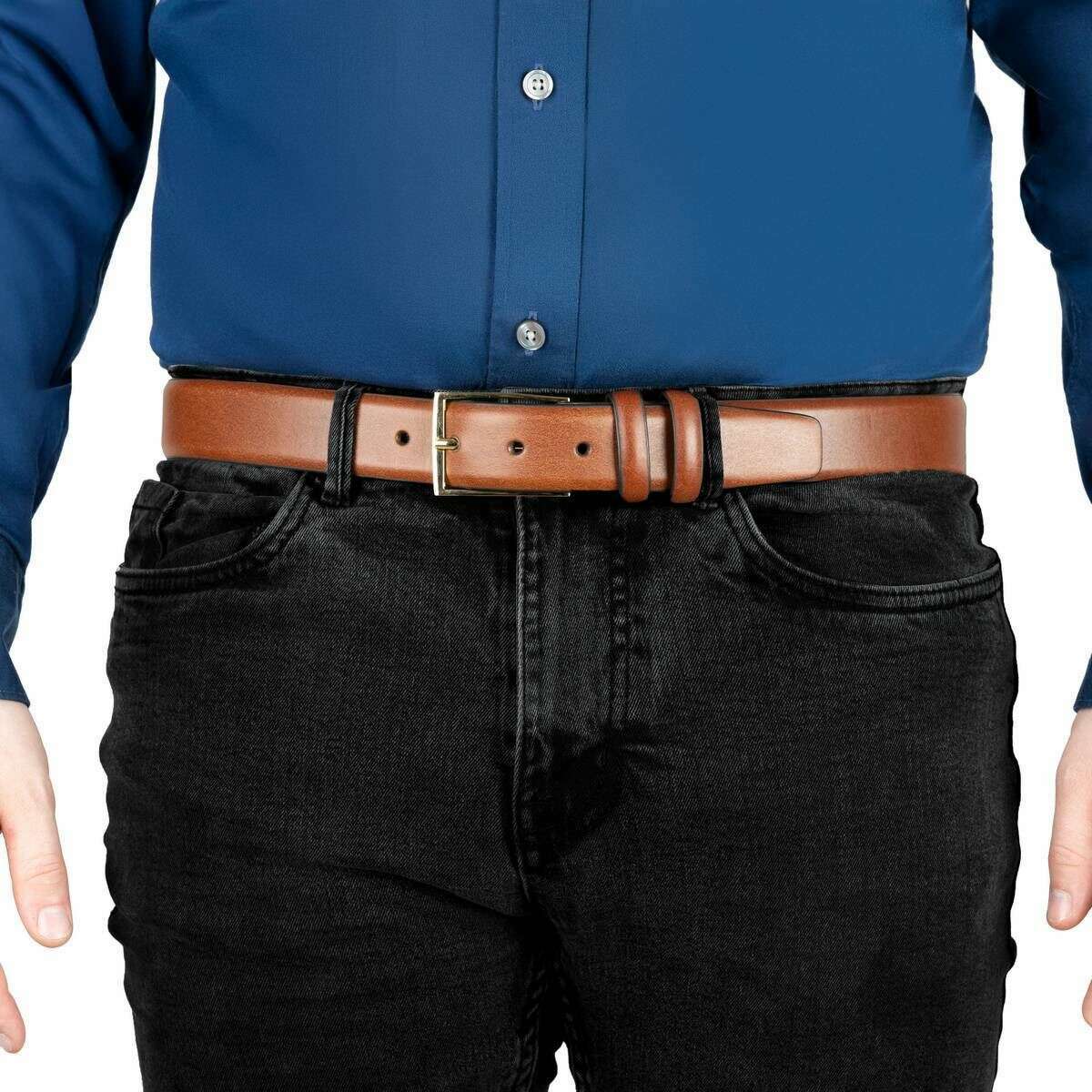 • ラウンドエッジ , レザー裏地 , スクエアバックル , ダブルレザーキーパー , 台形ベルト先端 , 5穴 , 幅3.5cm