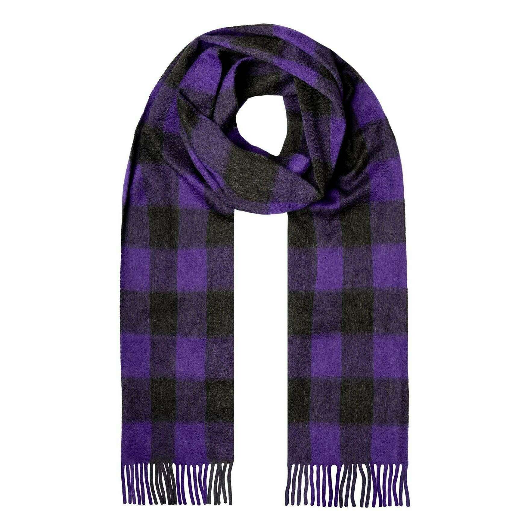 Dents Heritage Plaid チェック カシミア スカーフ - アメジスト パープル/ブラック