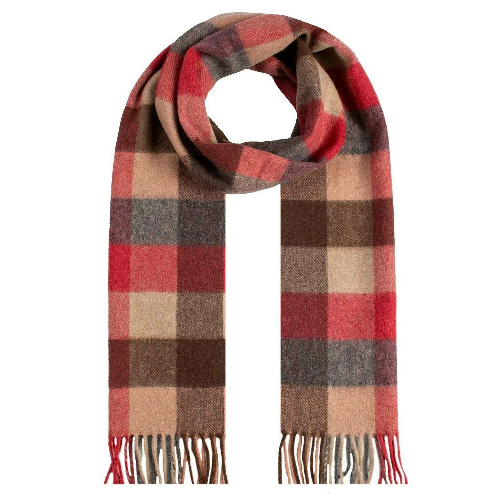 Dents Heritage チェック カシミア スカーフ - チリレッド/ブラウン