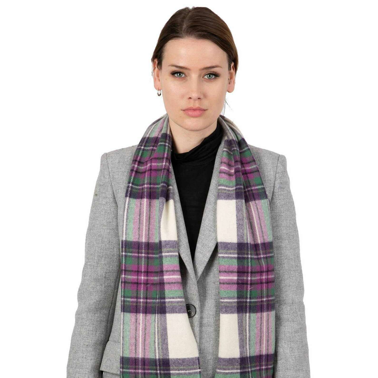 Dents Heritage チェック カシミア スカーフ - アイボリー/パープル