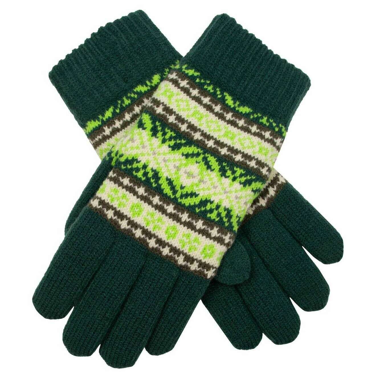 Dents Jacquard Fair Isleニットグローブ - オリーブグリーン