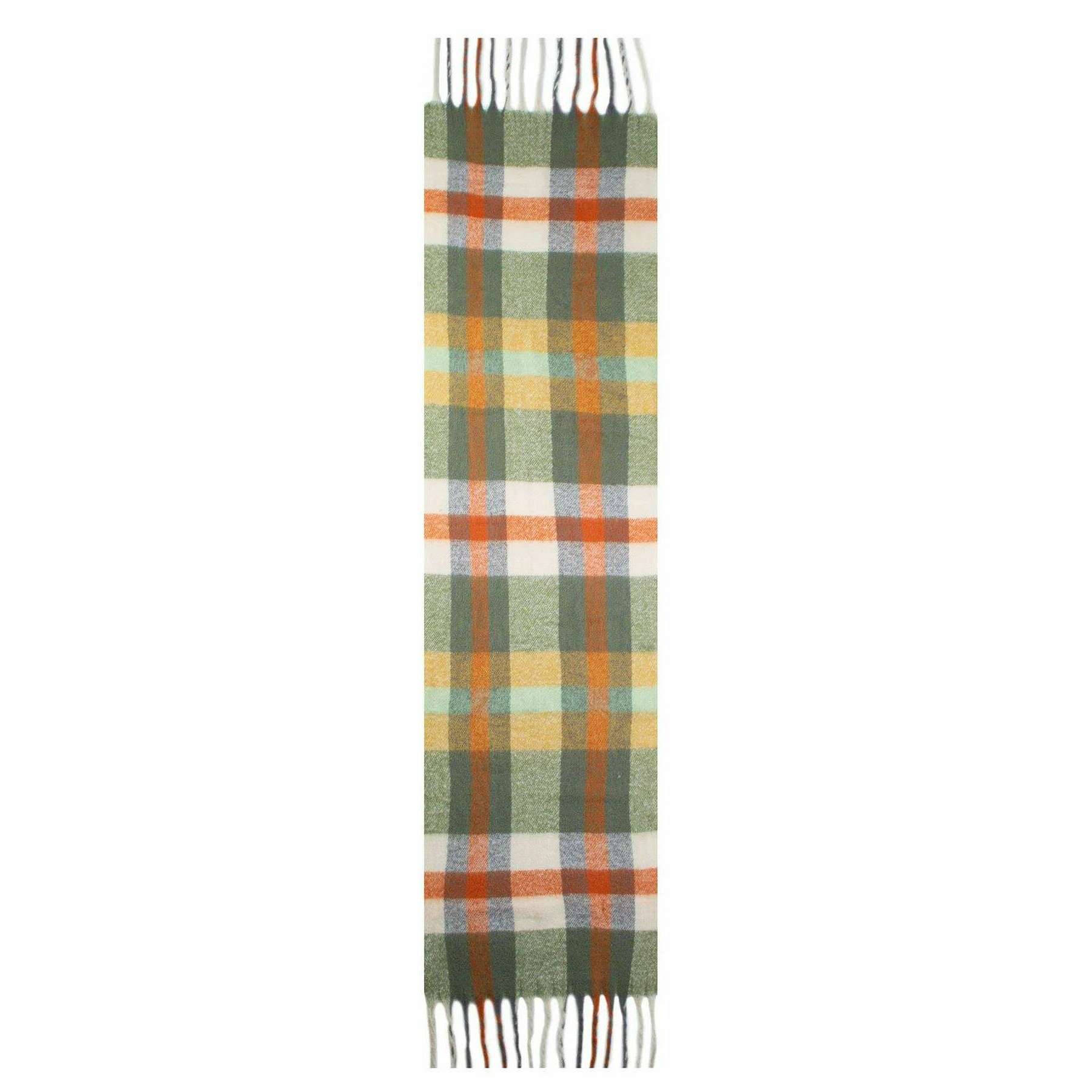 Dents チェック柄ブランケットスカーフ - オリーブグリーン/オレンジ