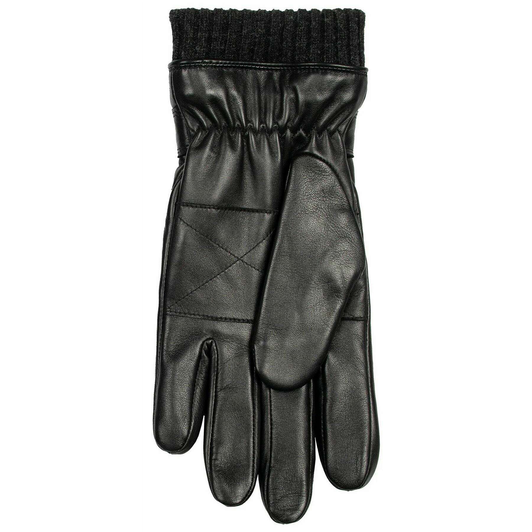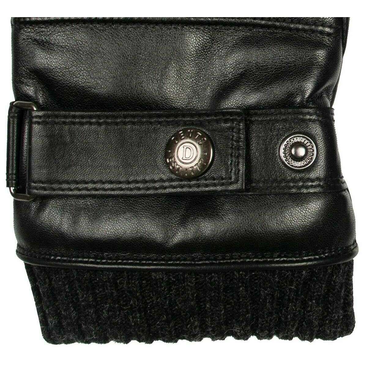 Dents Skipton ニット カフ ステッチ ディテール レザー グローブ - ブラック