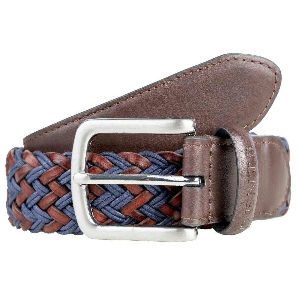 Dents レザーとコットンの編み込みベルト - ブルー