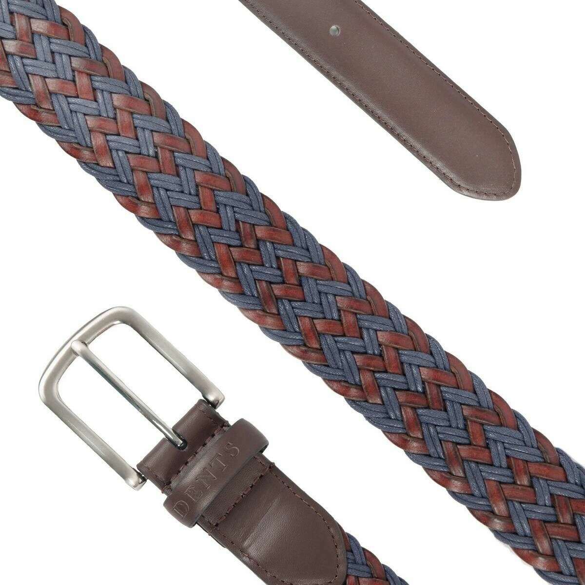 このメンズのレザーとコットンの織りベルトは 100% レザーで作られており、ブルーの色が特徴で、ブランドのものです。 Dents. すべてのベルトには凹みタグが付いています。の Dents レザーとコットンの編み込みベルト - ブルーは、ワードローブにスタイリッシュなセンスを取り入れたい方に最適です。その編み構造は、カジュアルにもフォーマルにもあなたの服装を完璧に引き立てる素晴らしい全体的な外観を与えます。このベルトはシングル レザー キーパー、サテン ニッケル カラーの金具が特徴で、裏地はありません。