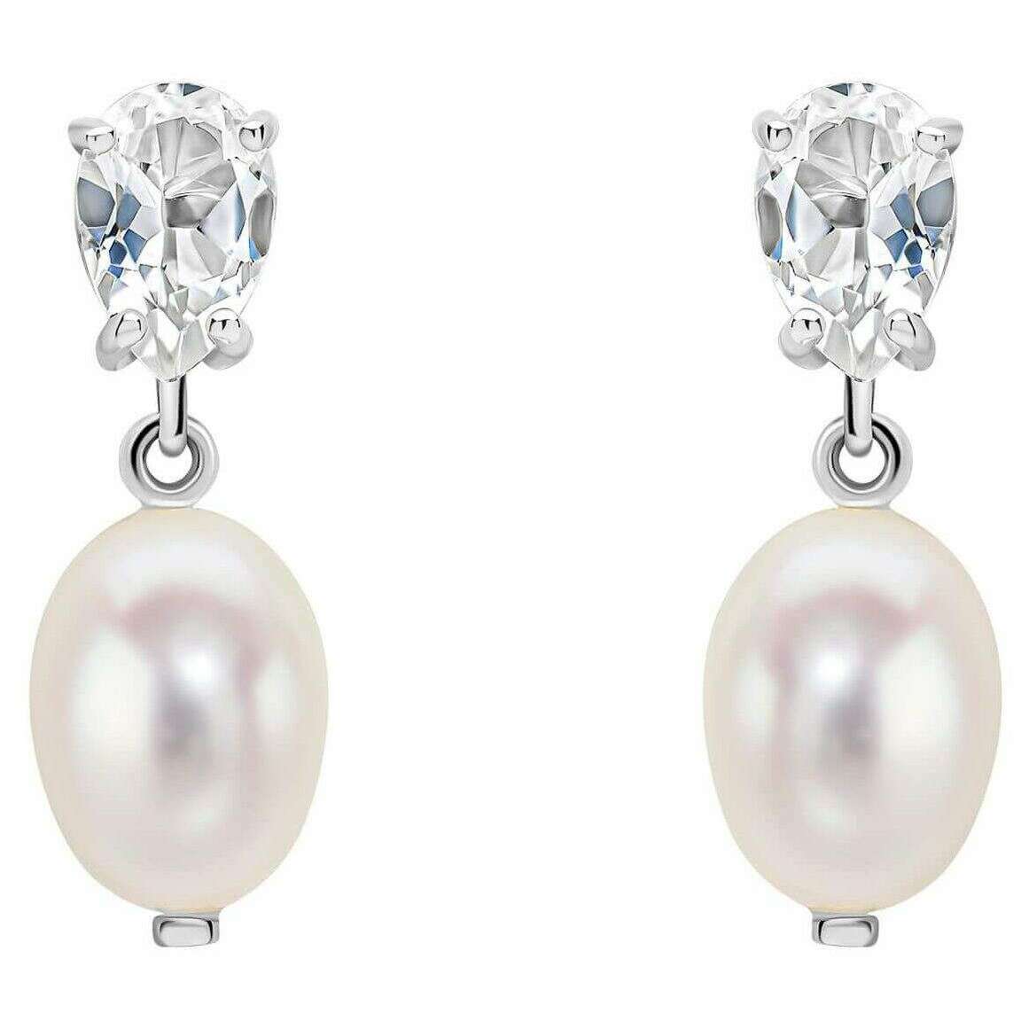 Elements Gold バロック パールとトパーズ 9ct ゴールド イヤリング - シルバー/ホワイト