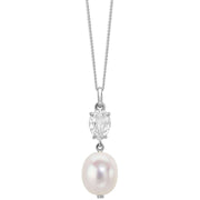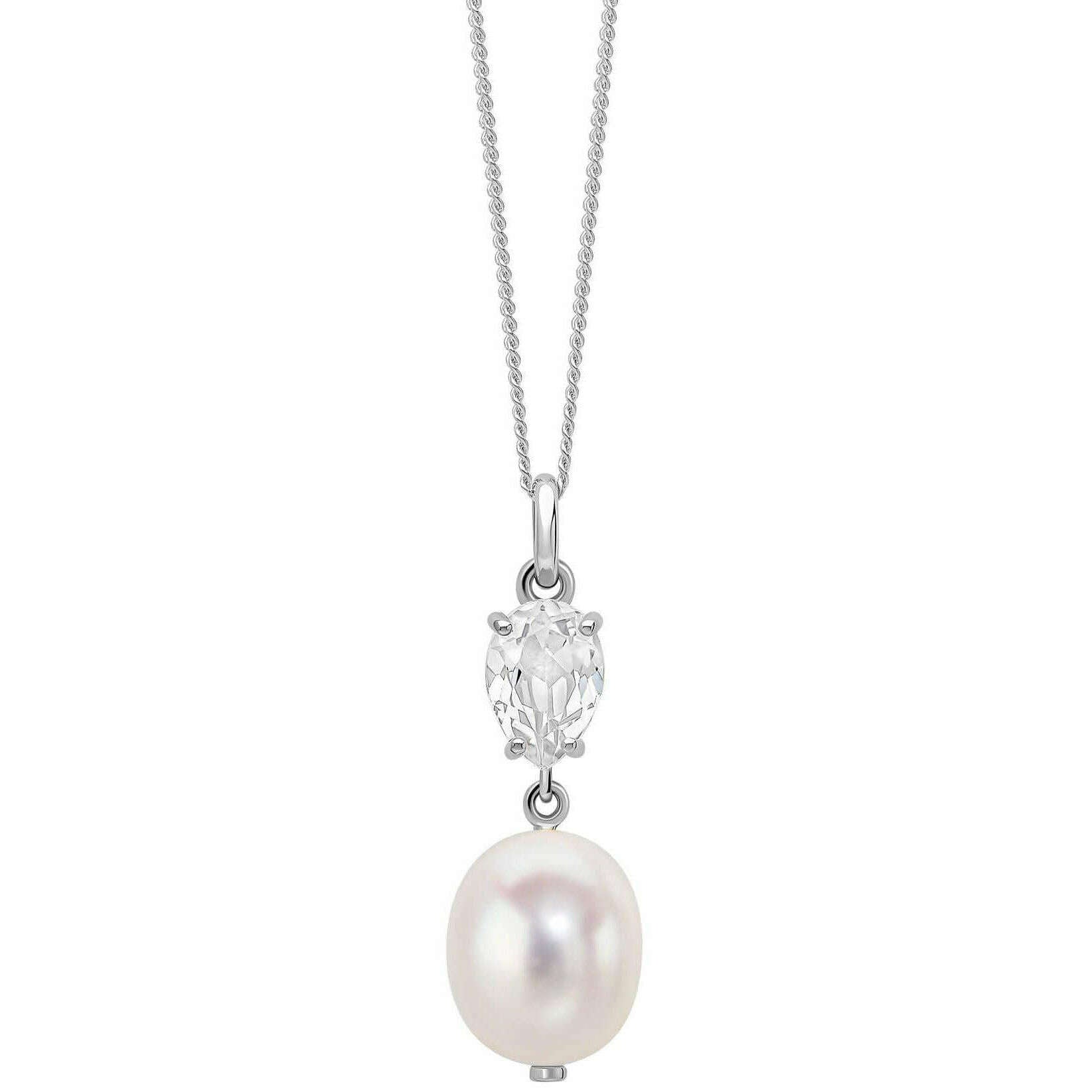 Elements Gold バロック パールとトパーズ 9ct ゴールド ペンダント - シルバー/ホワイト