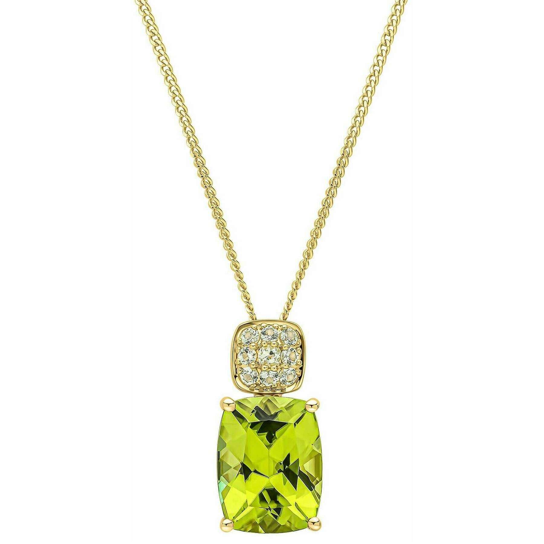 Elements Gold クッション カット クラスター ペリドット 9ct ゴールド ペンダント - ゴールド/グリーン